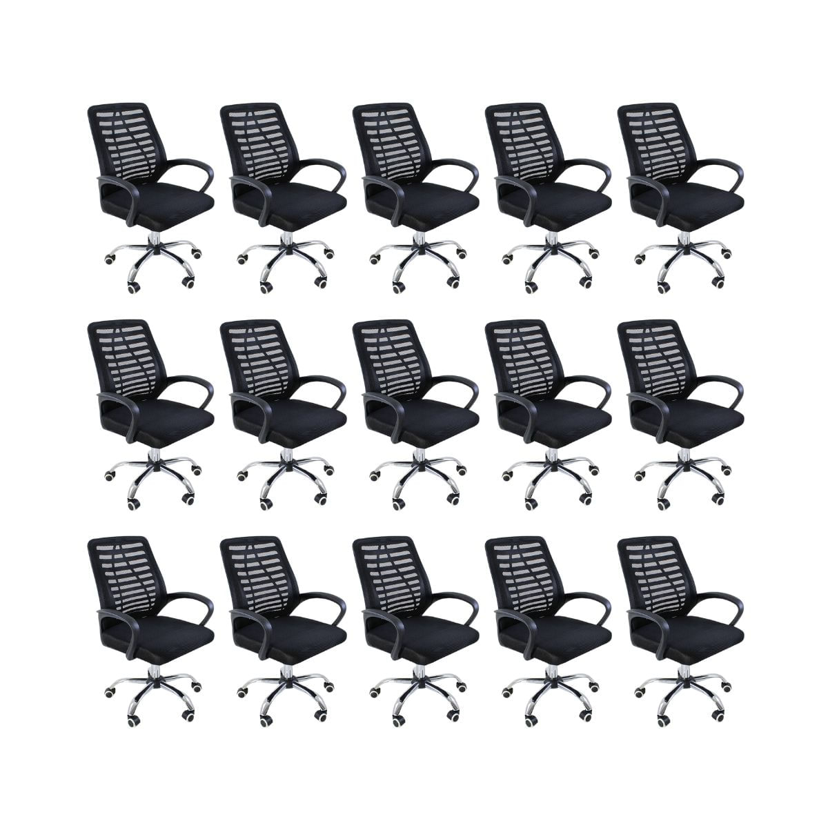 Kit 15 Cadeiras De Escritório Esteirinha Tela Mesh Giratória - Branco