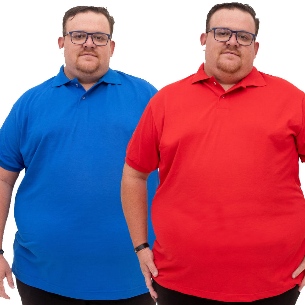 Kit 2 Camiseta Gola Polo Plus Size Com Botao Tamanho Especial 50% Algodão 50% Poliéster Piquet