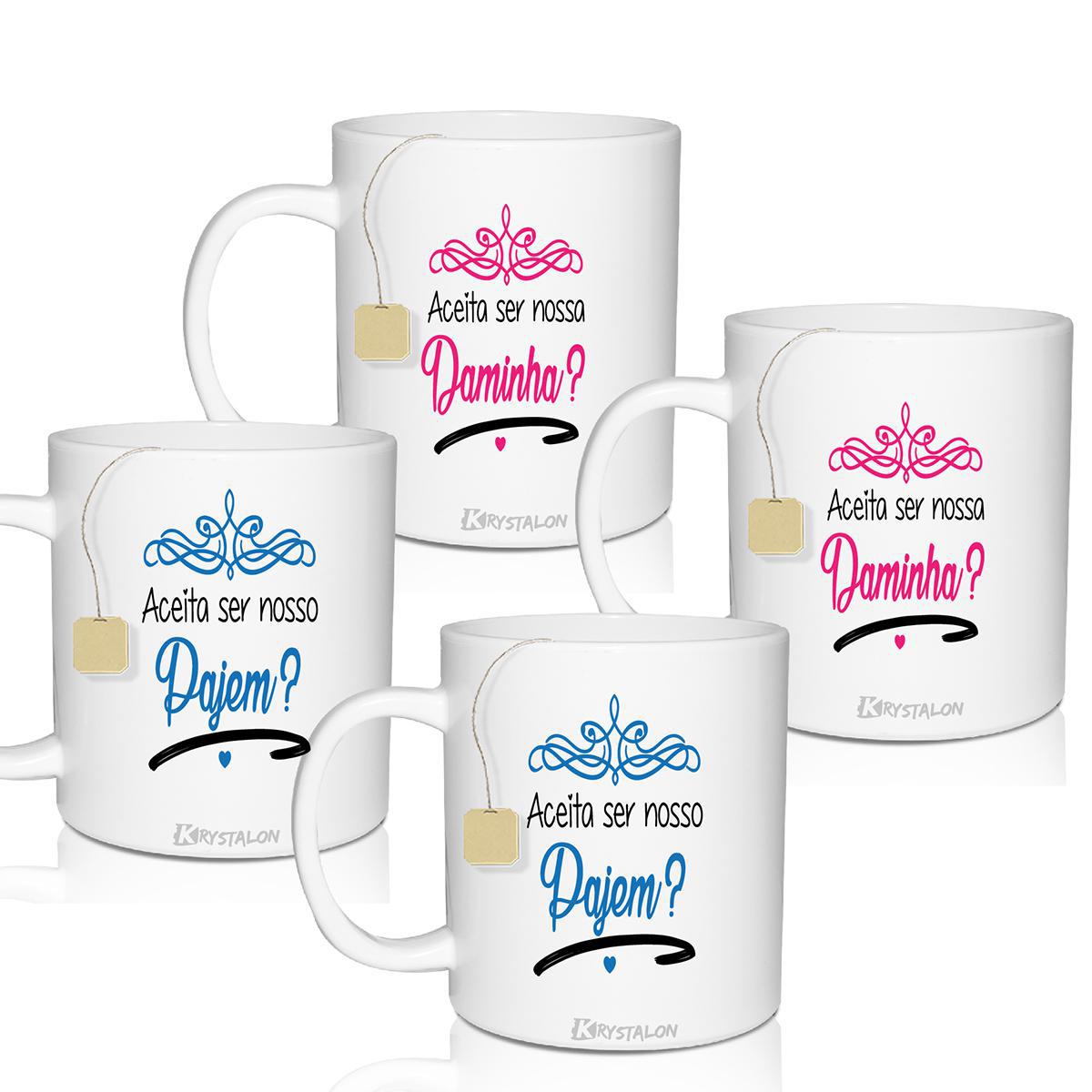 Kit 4 Canecas Convite Pajem E Daminha