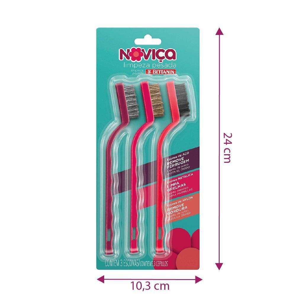 Kit De Escovas Para Limpeza Pesada Noviça Com 3 Tipos De Cerdas Para Remoção Rosa Bettanin