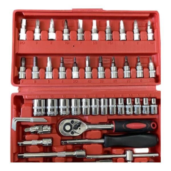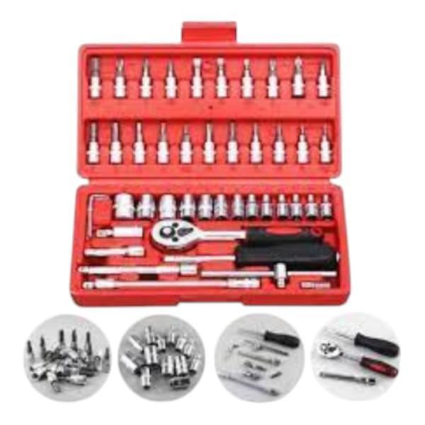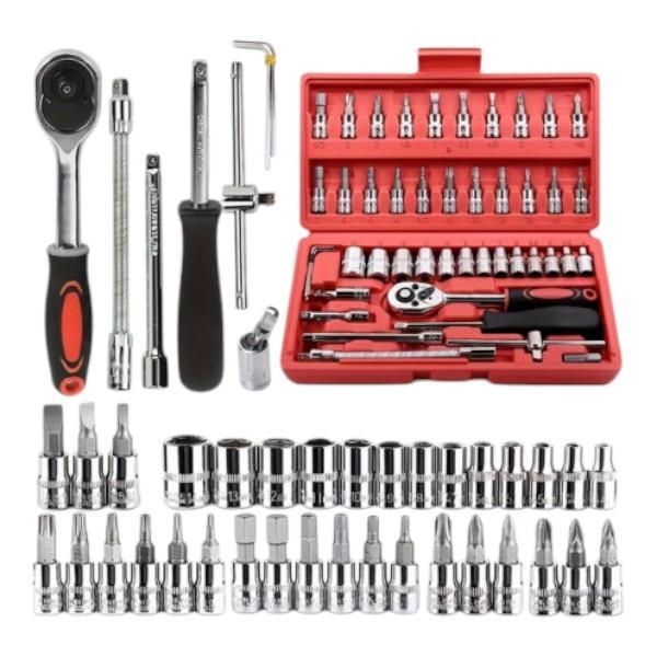 Completo E Versátil: Com 46 Peças, Incluindo Soquetes, Chaves De Fenda, Chaves Inglesas E Mais, Você Terá Todas As Ferramentas Essenciais Ao Seu Alcance.