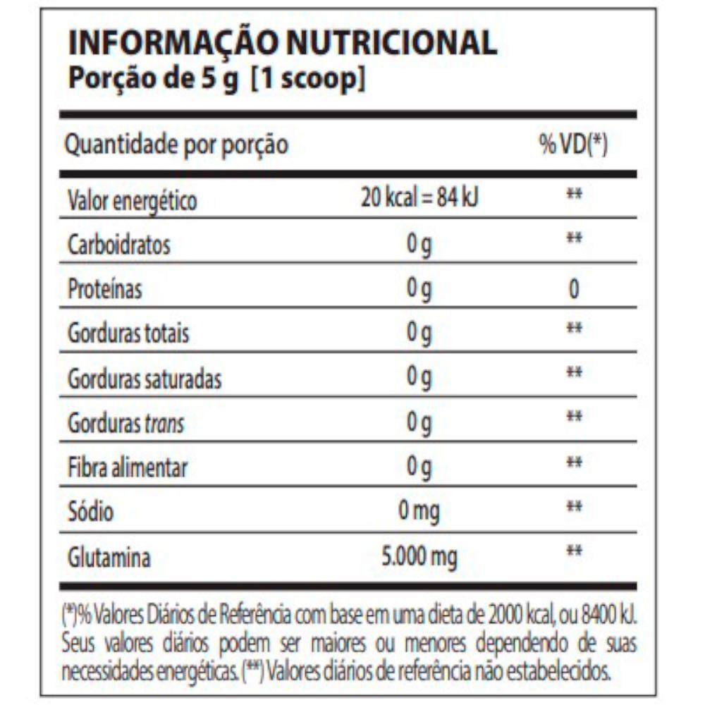 Ingredientes: L-glutamina. Não Contém Glúten. Este Produto Não É Um Medicamento. Não Exceder A Recomendação Diária De Consumo Indicada Na Embalagem. Mantenha Fora Do Alcance De Crianças. Este Produto Não Deve Ser Consumido Por Gestantes, Lactantes E Crianças. Este Produto É Recomendado Para Adultos Acima De 18 Anos.