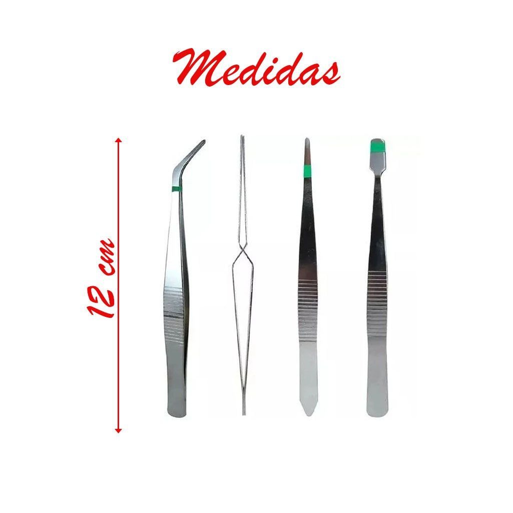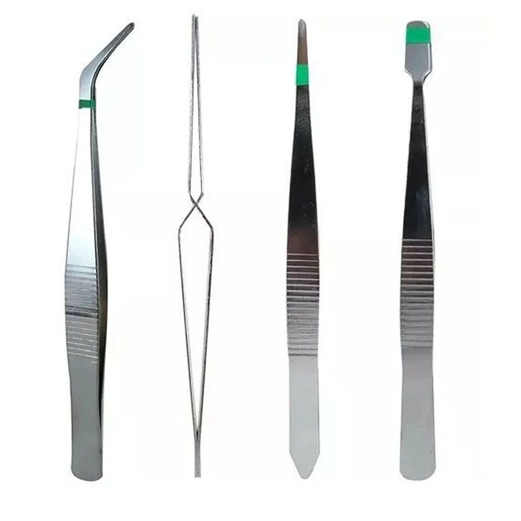 Kit Jogo De 4 Pinças Em Aço Para Eletrônicos E Artesanato