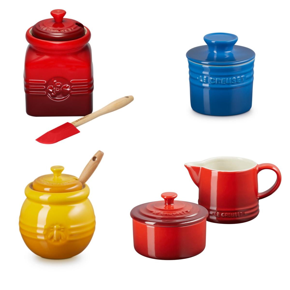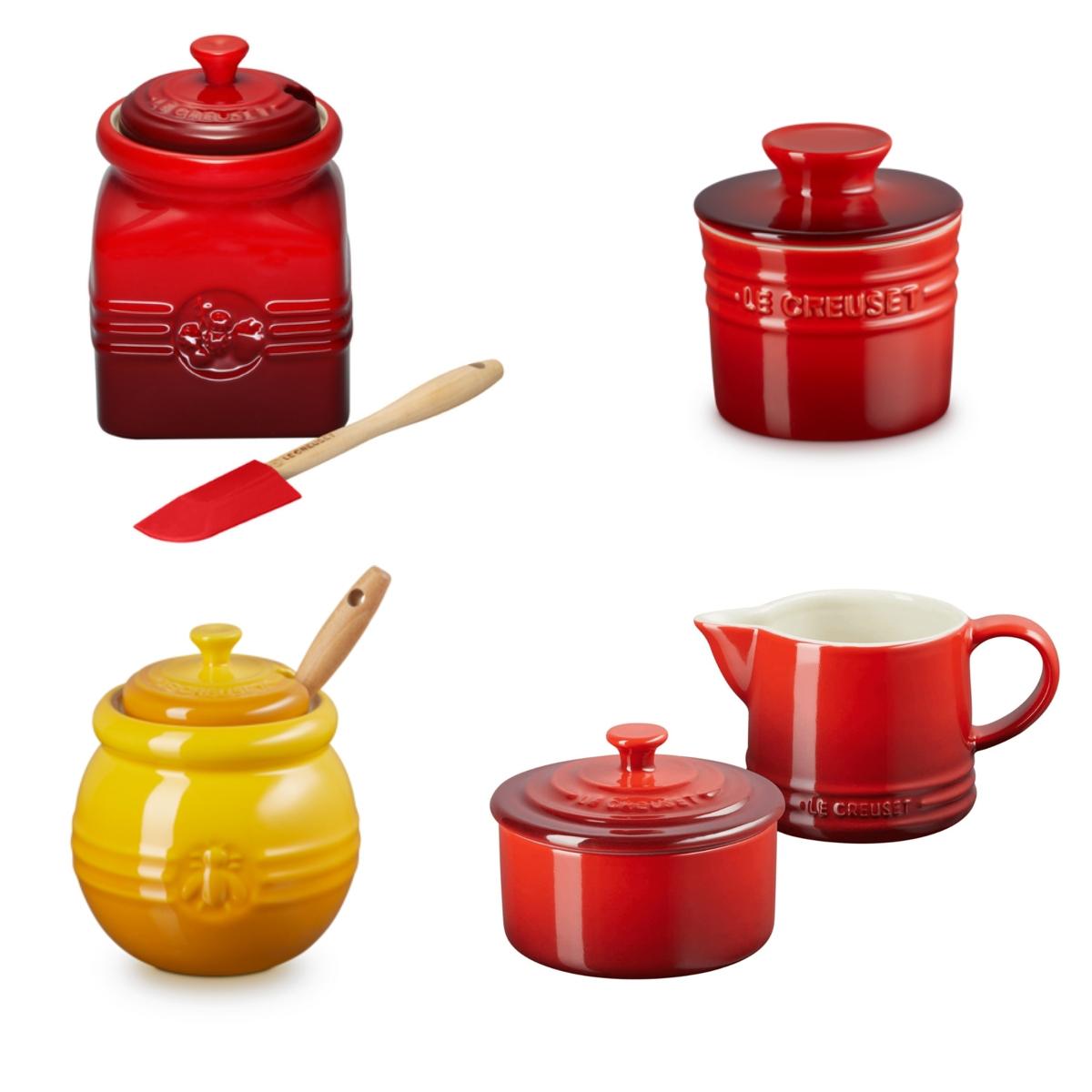 Kit Le Creuset Conjunto Creme E Açúcar Vermelho + Potes De Geléia Vermelho, Mel Amarelo Néctar, Manteiga