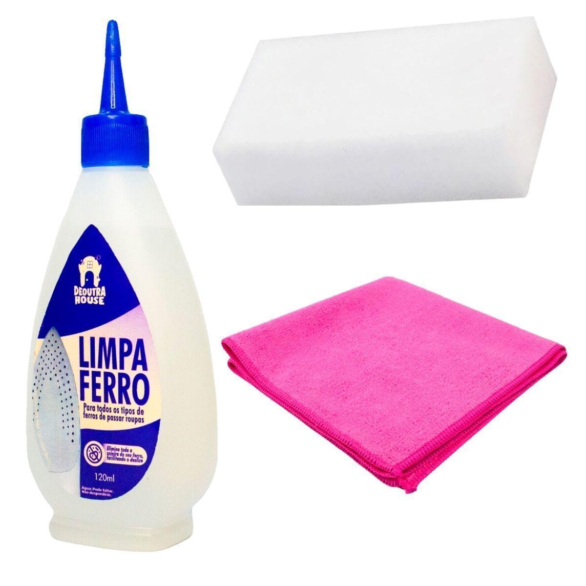 Kit Limpeza De Ferro Passar Roupa Com Pano Rosa E E Esponja