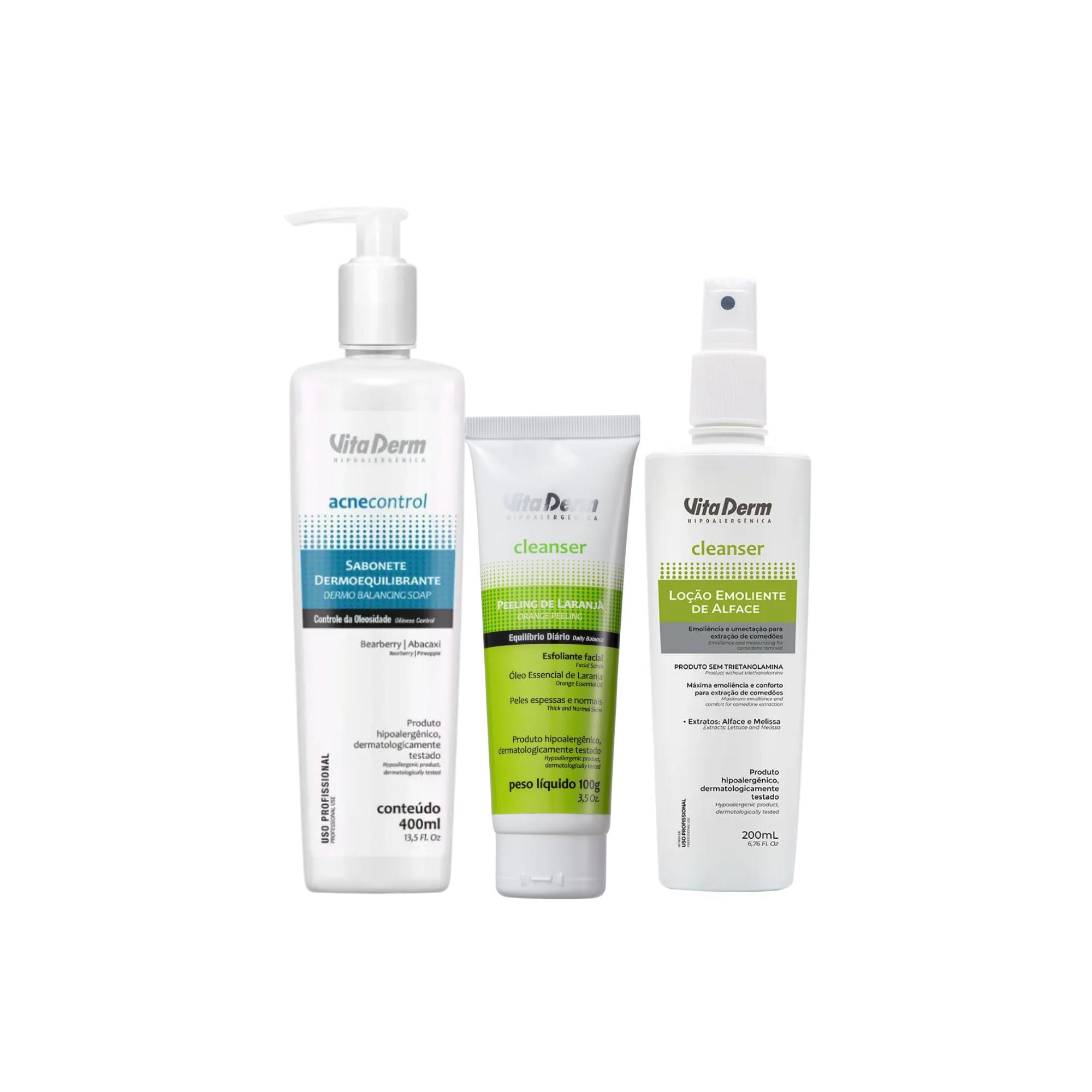 Kit Limpeza De Pele Vita Derm Com Seru Deep E Biossecativa