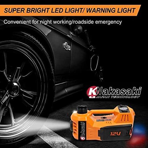 Operação Simples: Nosso Conjunto De Macacos De Tesoura É Uma Ferramenta De Reparo De Carro Necessária Sempre Que Se Depara Com Uma Emergência Na Estrada. Leva Apenas 2 Minutos Para Atingir A Altura Máxima (42cm), Troque Seu Pneu Com Facilidade. Especialmente, Incluindo Um Acionador De Partida Recém-desenvolvido, A Ferramenta De Reparo Do Carro Não Permite Que Você Lute Mais Com Um Macaco De Mão Antiquado Ou No Escuro Da Noite. Basta Ligar O Jump Starter E Tocar Em Um Botão Para Uma Elevação Suave.