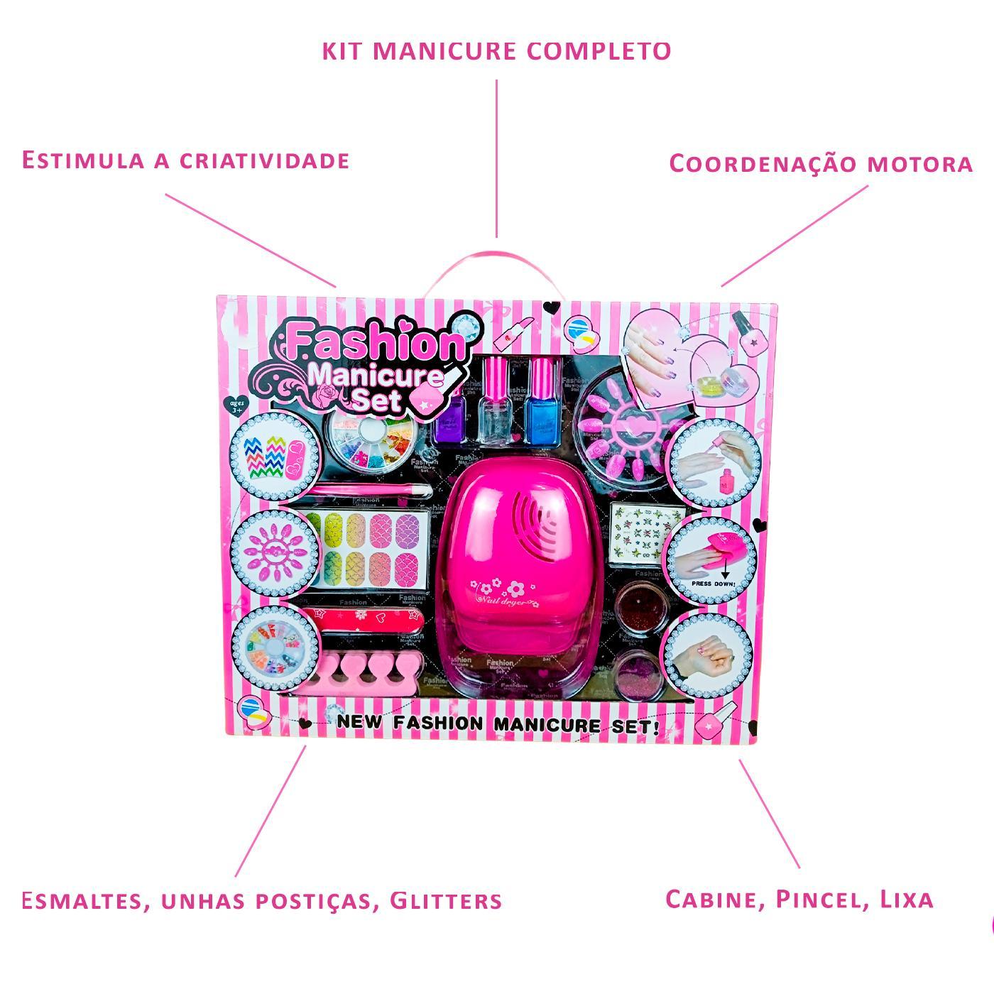 Kit Manicure Esmaltes Para Crianças Com Cabine E Acessórios
