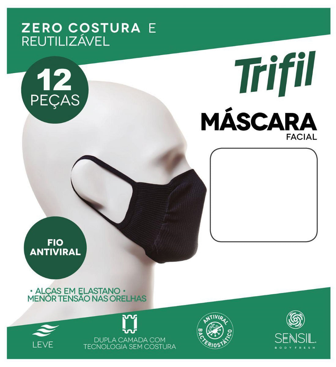 Kit 12 Máscaras Trifil Zero Costura Dupla Camada W06103
