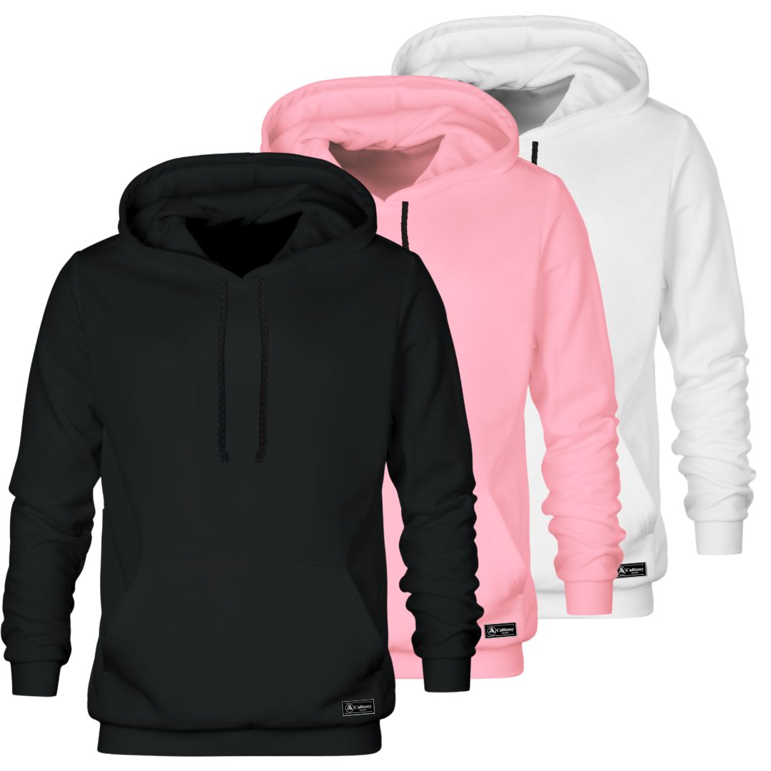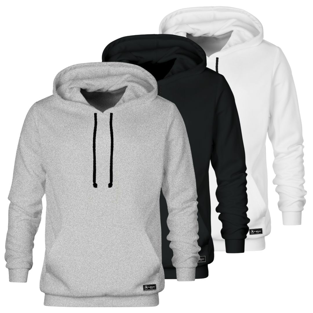 Kit 3 Moletons Canguru Masculino E Feminino Liso Básico Com Capuz E Bolso