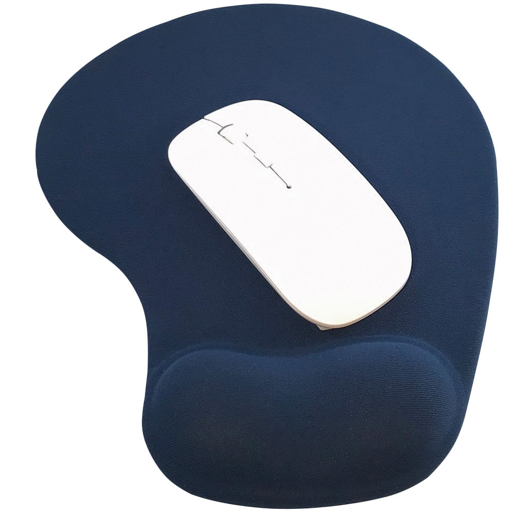 Kit Mouse Sem Fio e Mouse Pad Ergonômico TopGet Azul Marinho e Branco