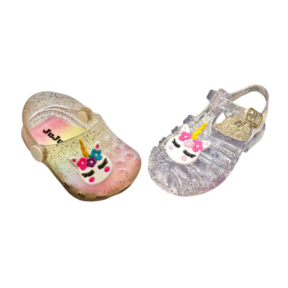 Kit 2 Pares Sandália Bebê E Babuche Infantil Unicórnio Meninas Juju