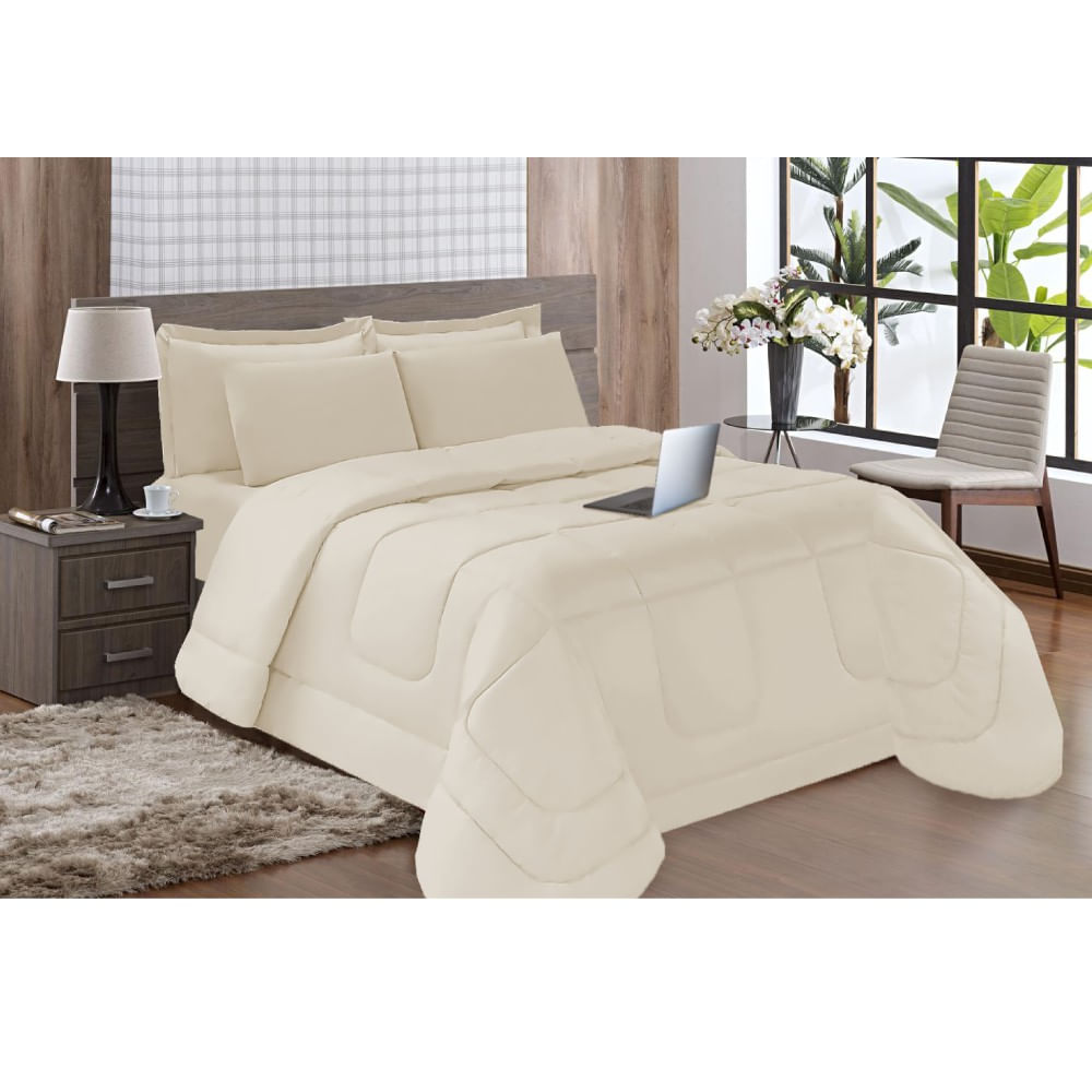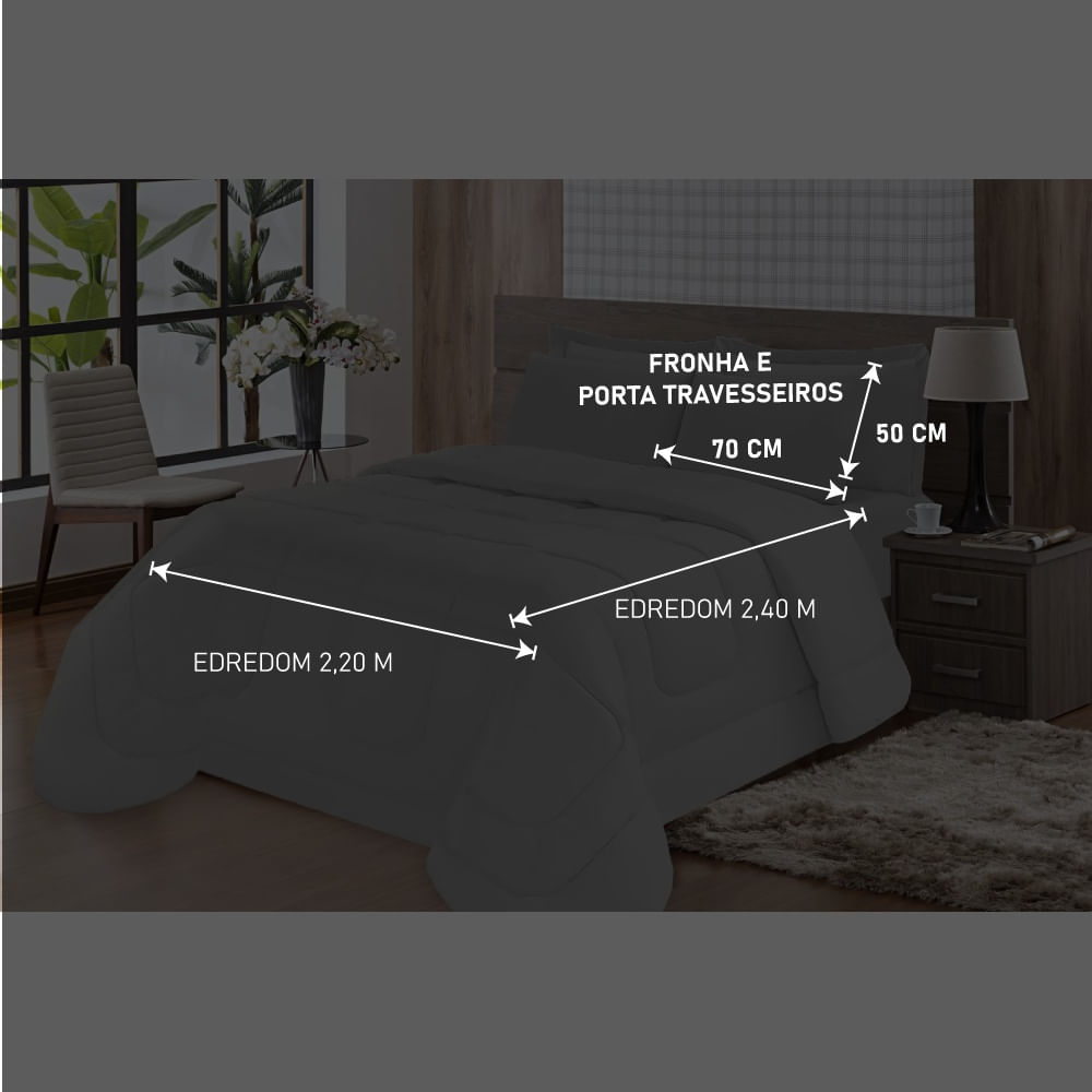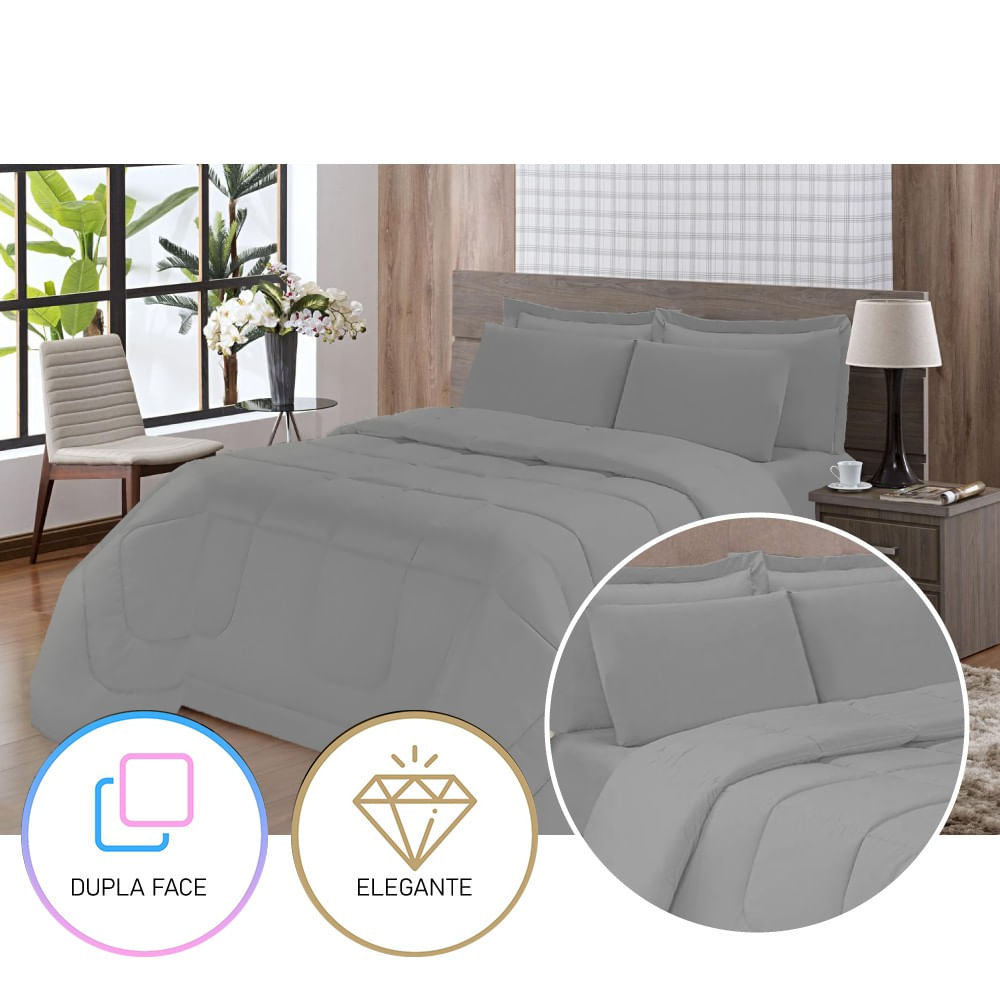 Edredom Conforto 5 Peças Casal Queen Dupla Face Cinza Casa Dona