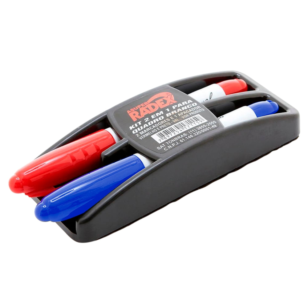 Kit 2 Pincéis Para Quadro Branco Pt/vm E Apagador Radex