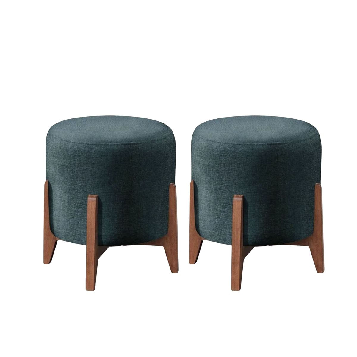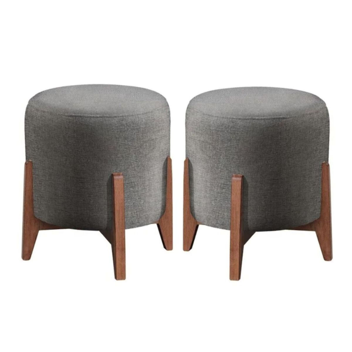 Kit 2 Puff Decorativo Para Sala Redondo Luxo Selena Linho
