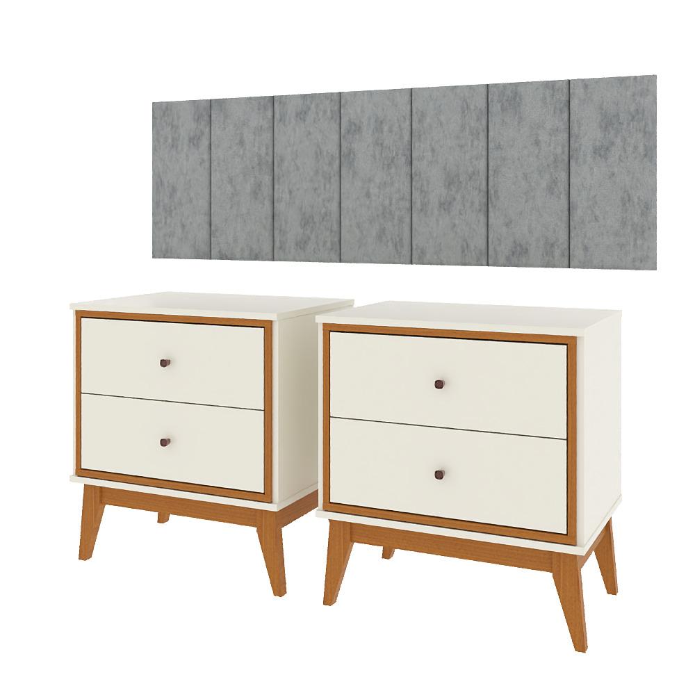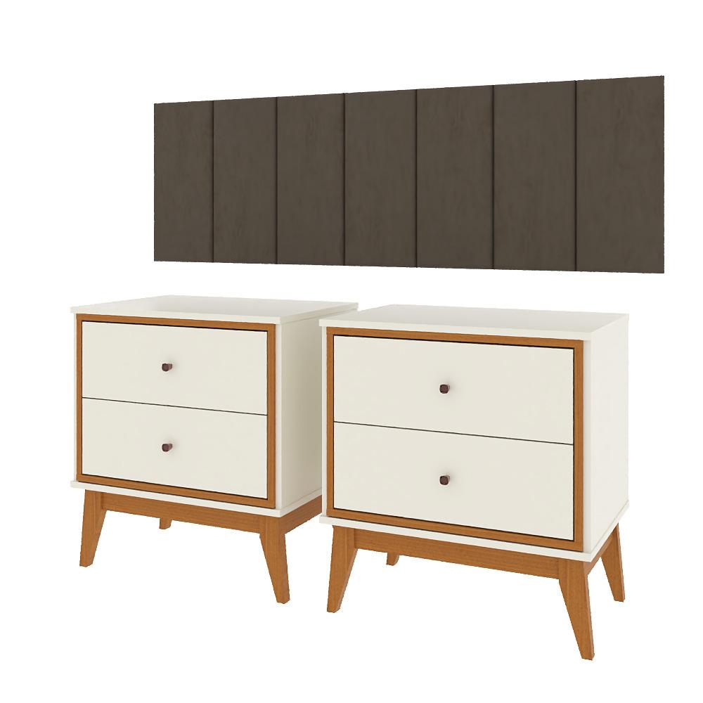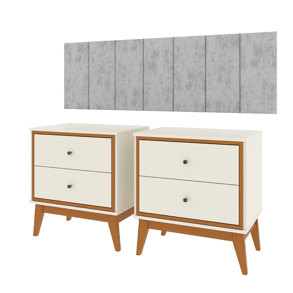 Kit Quarto Casal 2 Mesas De Cabeceira Arruna Mdf 2 Gavetas E Cabeceira Casal 1,40 Autocolante - Bege