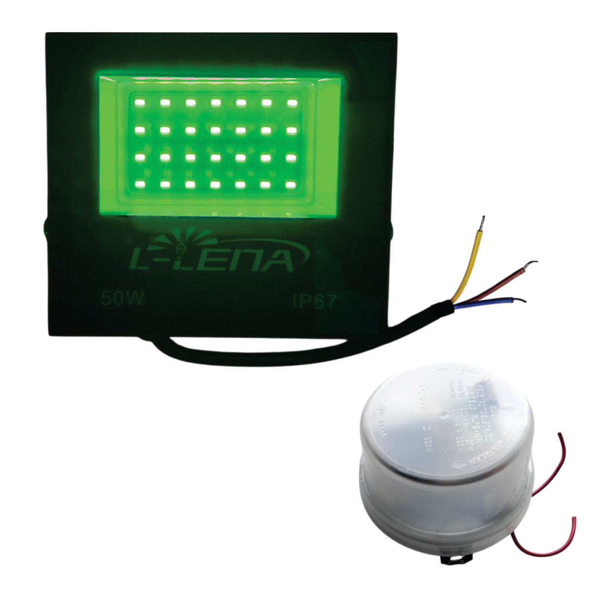 Kit Refletor De Led 50w Verde Com Fotocelula Bivolt