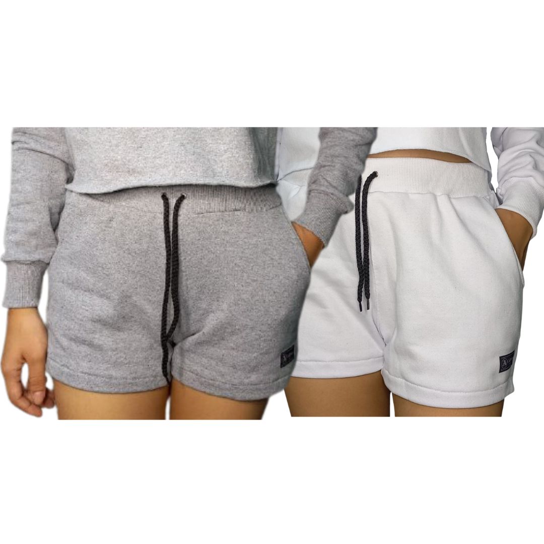 Kit 2 Shorts Moletom Feminino Com 2 Bolsos Básico Casual Treino
