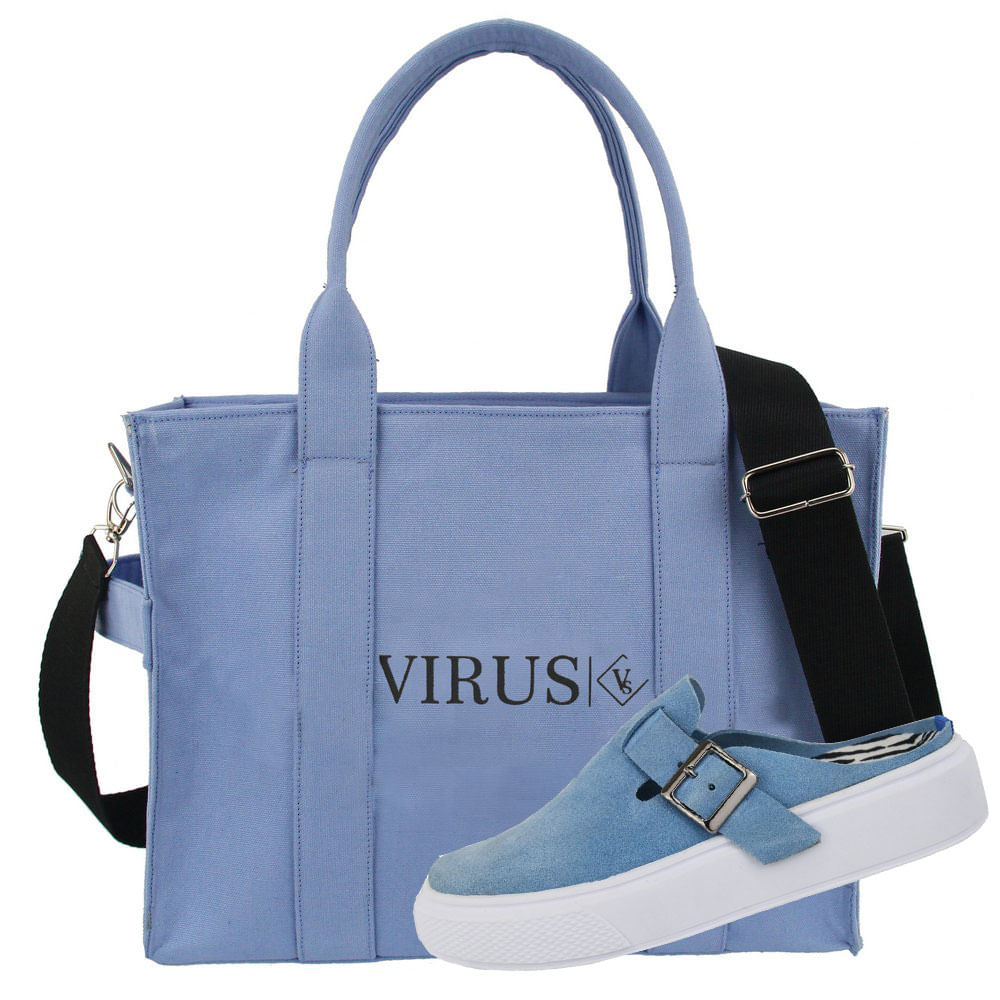 Kit Tenis Slip On Feminino Camurça Calce Facil Com Bolsa Lona Tote Bag Alça Fixa E Transversal Removivel