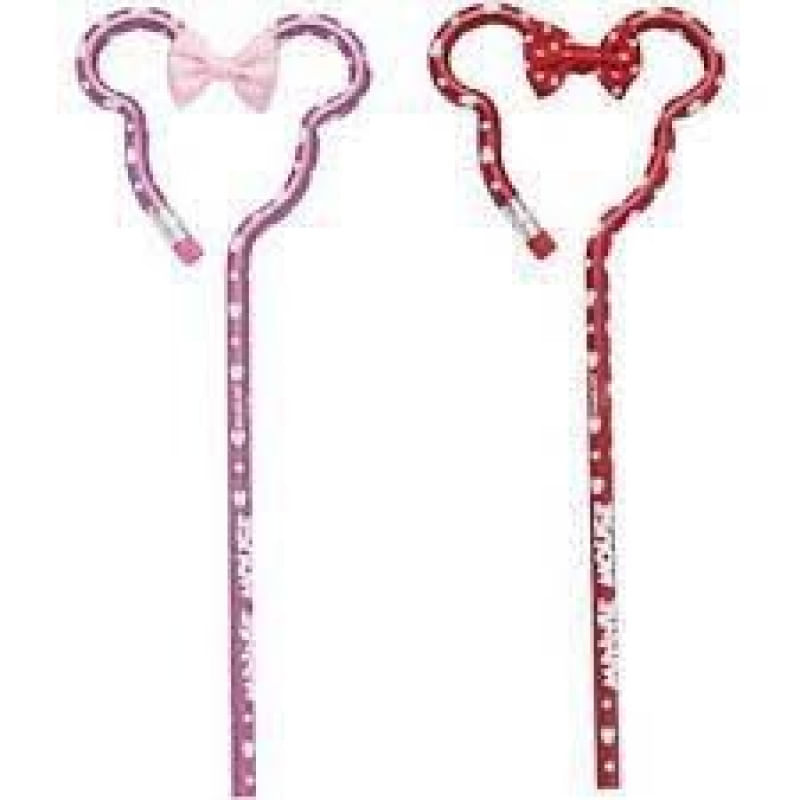 Lápis preto com formato da face da Minnie Mouse! Disponível em vermelho e rosa! Corpo metalizado!
