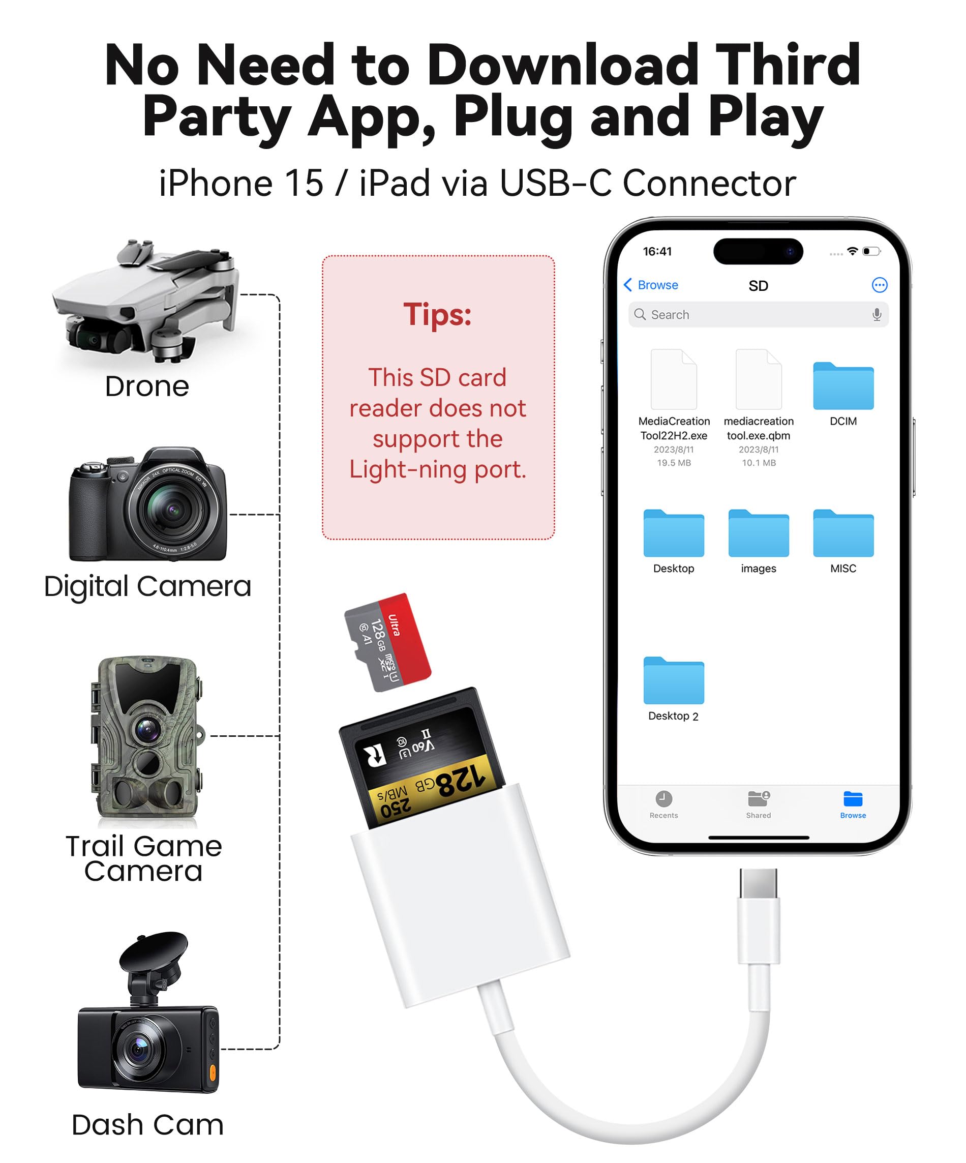 Leitor De Cartão Sd Usb C Xdgeload Para Iphone 15/ipad/macbook/mac