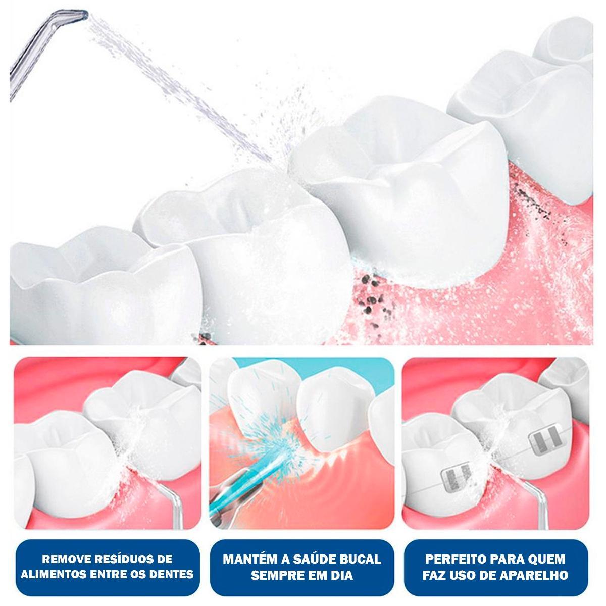 Realiza Limpeza Profunda Limpeza Profunda E Sem Dor Entre Os Dentes E Abaixo Da Linha Da Gengiva Por Meio De Jatos Contínuos Ou Pulsativos De Água, Removendo Resíduos De Alimentos E Bactérias De Áreas Em Que A Escovação E O Fio Dental Tradicional Não Alcançam.