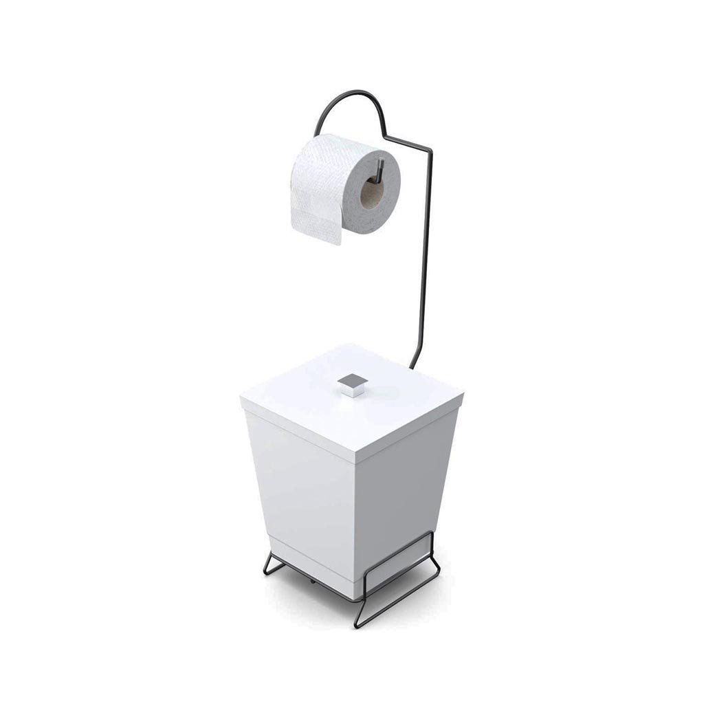 Lixeira Com Suporte De Papel Higiênico Em Aço Preto - Stolf
