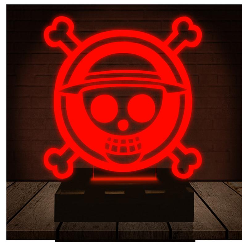 Luminária Led 3d One Piece Caveira Abajur - Azul