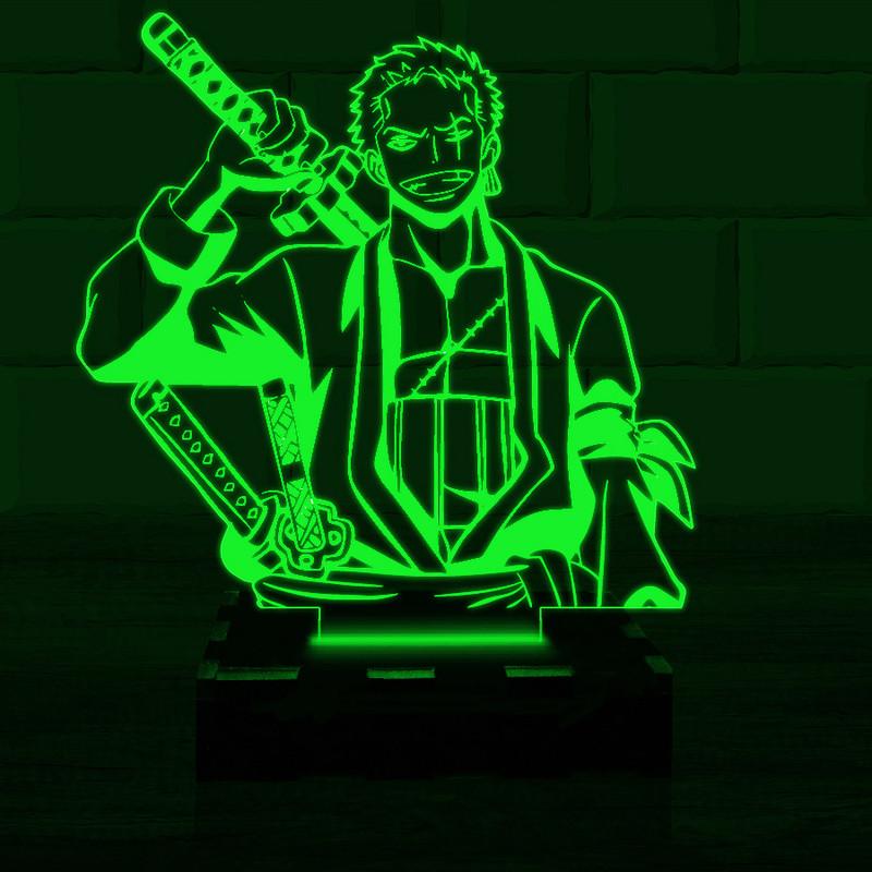 Luminária Led 3D Roronoa Zoro One Piece - Vermelho