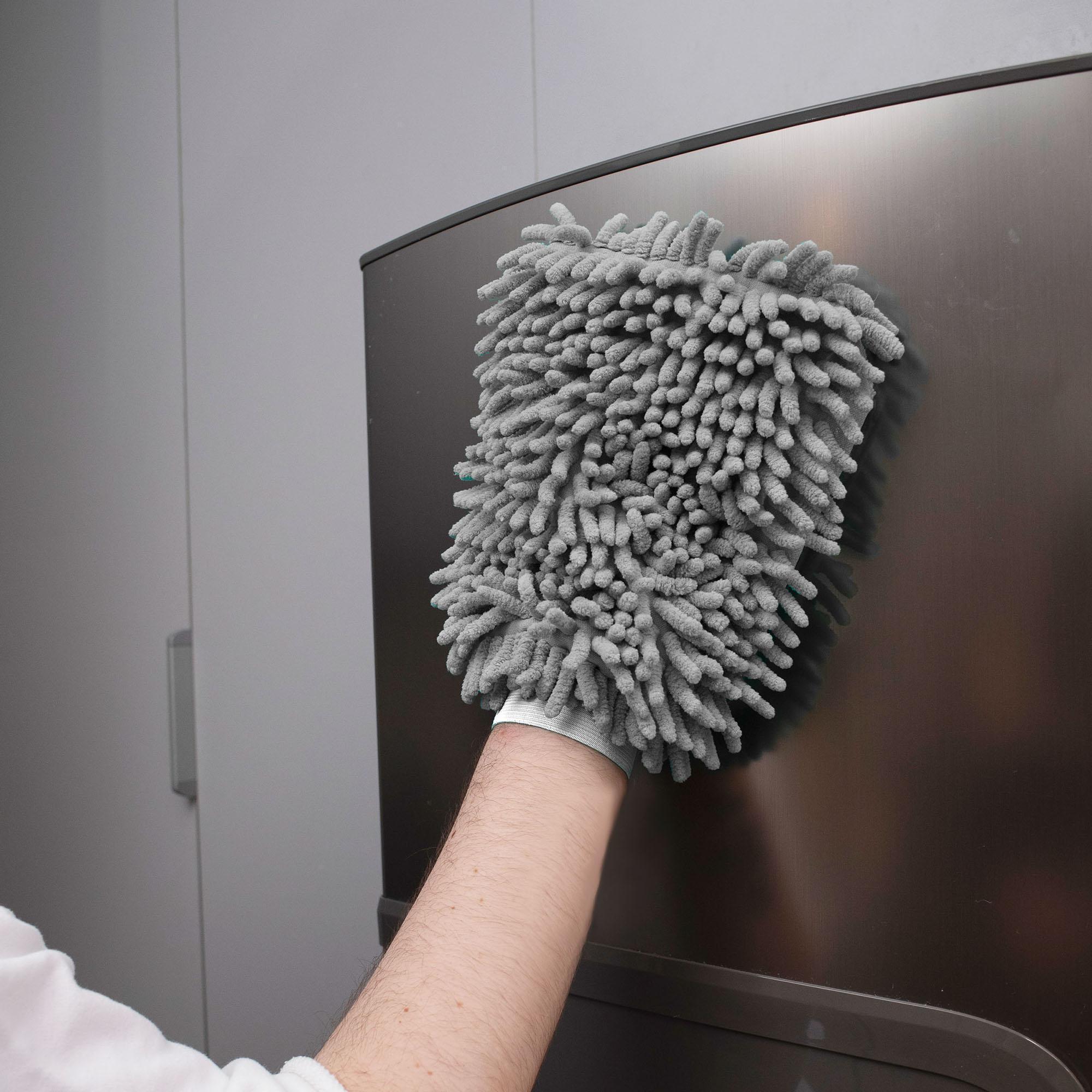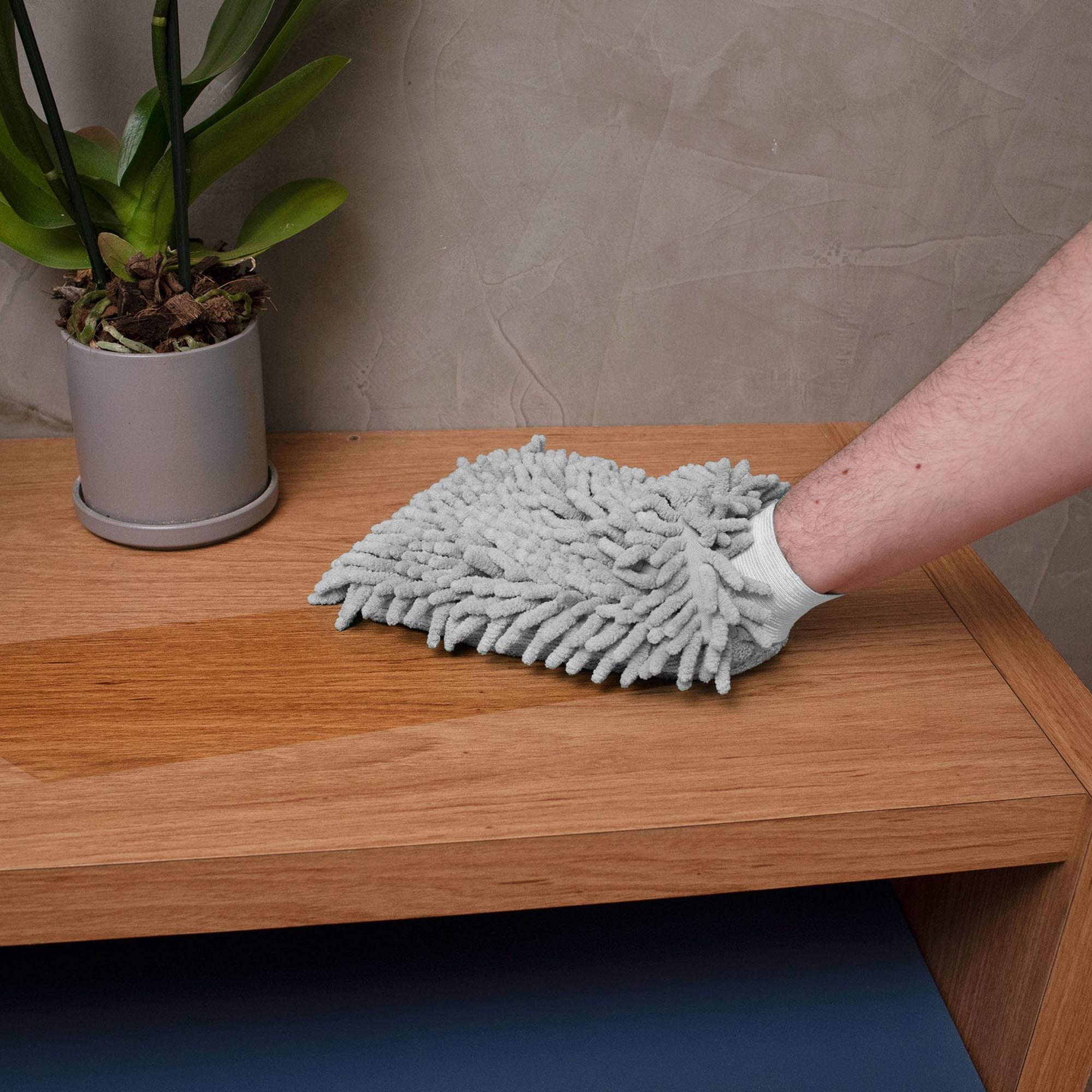É Só Vestir A Luva Na Mão E Passar Seca Para Tirar Pó E Secar Ou Úmida Para Limpar. Ideal Para Limpar E Secar Superfícies Lisas, Como Móveis E Eletrônicos, Vidros, Louças, Metais E Carros.