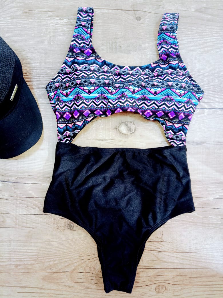 Maiô Com Abertura Frontal, estampa étnica