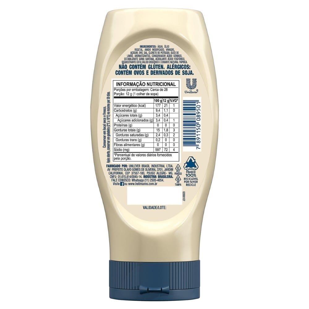 Água, Óleo Vegetal, Amido Modificado, Vinagre, Açúcar, Ovo, Sal, Cloreto De Potássio, Suco De Limão, Aromatizantes, Conservador Ácido
