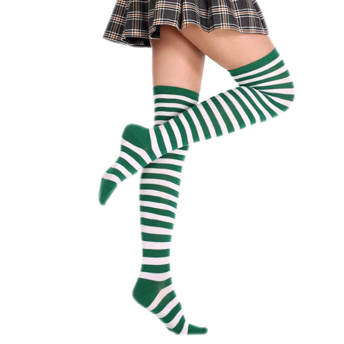Meia 7/8 Longa Listra Branca E Colorida Diversas Cores: Festa Fantasia Cosplay Dança Carnaval Halloween