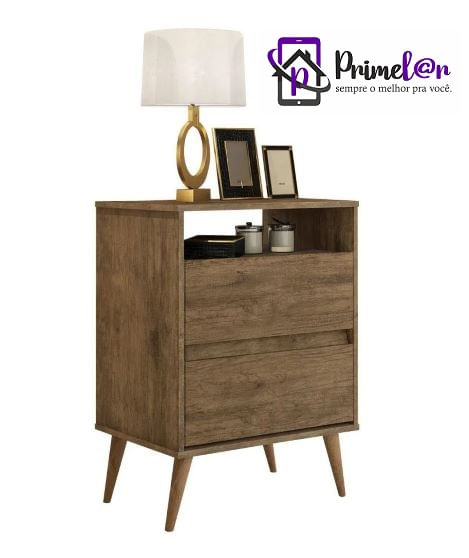 Mesa De Cabeceira Criado Retrô Com 2 Gavetas E Nicho Lotus