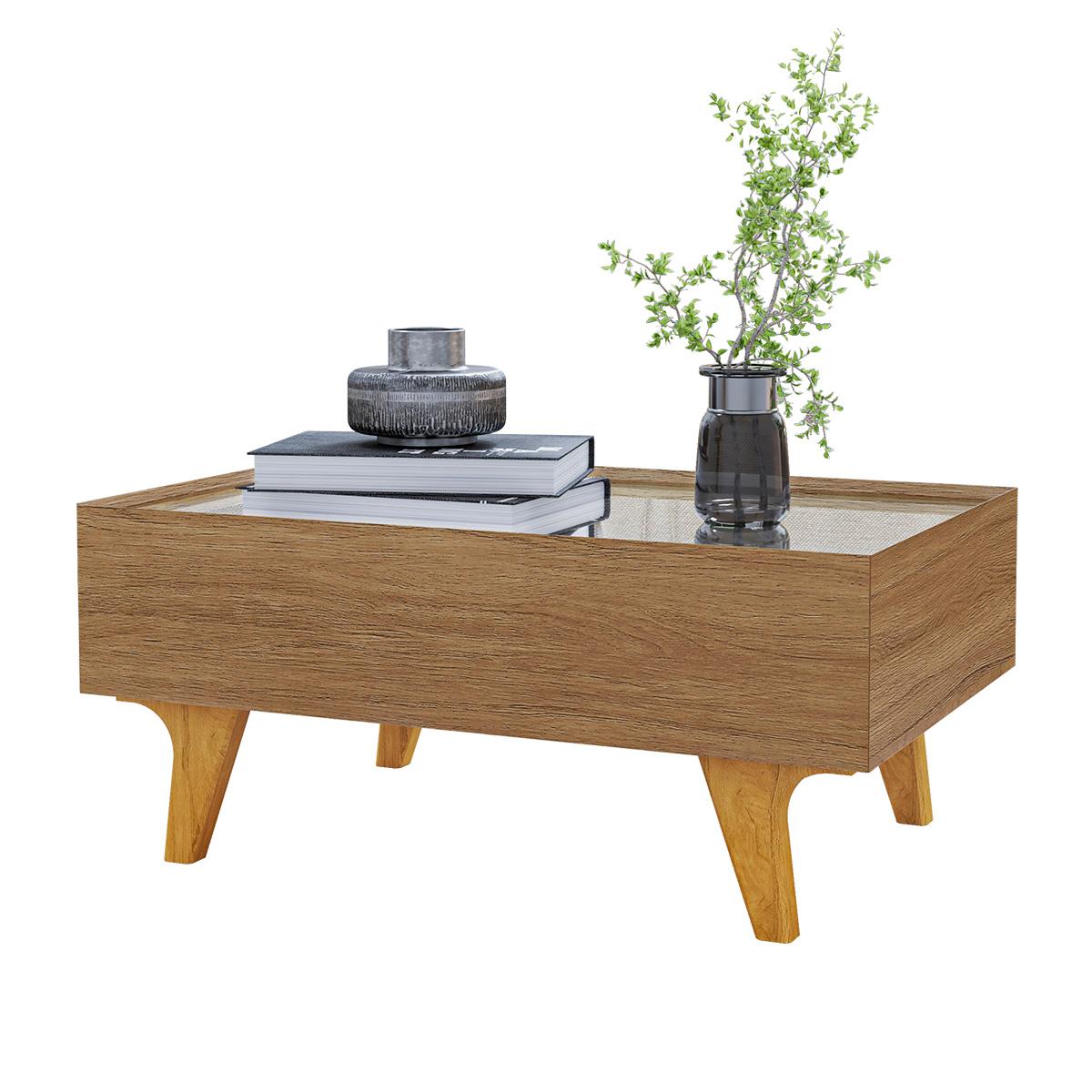Mesa De Centro Sala Sena Com Tampo De Espelho E 1 Gaveta Naturale
