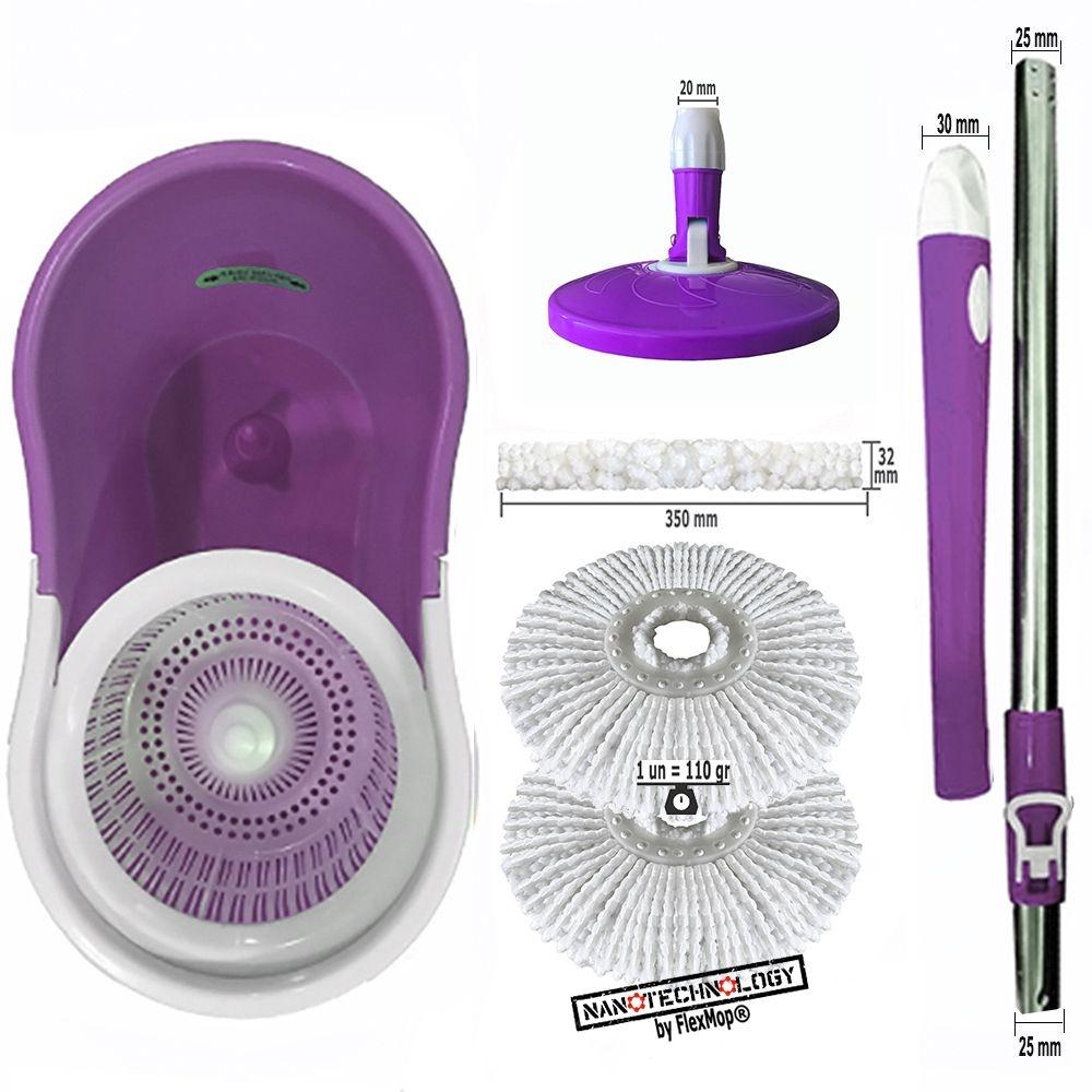 Nossa opinião: Economizar nos dias de hoje é fundamental, mas não necessariamente comprar mais barato significa economia, o Flexmop você não erra o alvo, nem tão caro, nem tão barato, preço justo com a qualidade nota 10 e o resultado é umacompra econômica de verdade. O coração do Mop é o Cabo(Haste), que é a parte mais exigida, porque 90% do esforço é realizado através dele. O Mop FlexMop Linha hobby 2.0, tem um grande diferencial, ele é 35% mais robusto (que os concorrentes) O cabo FlexMop 2.0 tem 1 polegada (ou seja 25 mm de diâmetro) na parte superior, enquanto que a média tem 18/19mm. Veja as fotos do sistema de buchas,(que fica embutida embaixo das cestas) muitas cestas acabam emperrando porque tem um sistema de bucha único, (ou seja, só de um lado) e o FlexMop tem sistema de bucha dupla, dando muito mais leveza (exigindo menos do cabo e da própria cesta) e veja também as fotos do fuso (barra de torção que fica dentro do cabo) O FlexMop tem um espacamento de 4,5 cm x 7mm largura e 2,7 mm de espessura. Itens inclusos no seu Kit Linha Hobby FlexMop: 01 Balde Mop Spin de 12 litros, 45 x 25 x 22,5 cm 01 Cesta Rotativa Centrifugadora 18 x 9 cm 01 Cabeça Rotativa 15,8 cm (Porta Esfregão) 01 Haste Telescópica 360 Desmontável - Sob a Cabeça, em descanso:1.00 m, aberto:1.26 m 01 un do Kit + Brinde 01 un de Refil Nano Padrão USA, = 02 un de Refil 105/110 Gr, Franjas 8 mm, Diâmetro 350mm, 100%Microfibra 01 Manual de instruções + Dicas (PDF) De quanto em quanto tempo é recomendado trocar o refil do meu Mop Spin 360 Flexmop? Por questões de higiene é recomendado trocar o Refil a cada 3/4 meses, não tanto em função da questão estética (porque as franjas vão ficando amareladas e escuras) mas porque os germes e bactérias vão impregnando na microfibra podendo ser prejudicial a sua saúde e de sua família. Aproveite a sua compra e economize no seu frete, comprando a Mega Promo de Refil p/01 Ano ou ainda Hiper Promo de Refil p/02 Anos,(veja disponibilidades) porque se você deixar para comprar depois, vai ter que pagar pelo frete apenas pelas unidades de refil e dependendo da sua região o produto+ o frete vão custar o dobro, então sugerimos que economize agora, até porque o preço do frete não muda ao incluir o seu kit promocional de Refil. Quais diferenciais da genuína Marca FlexMop? 1 Todas peças de reposição no Brasil 2 Preço justo 3 Assistência Técnica A marca FlexMop é uma das mais tradicionais por esse motivo se consagrou como uma das marcas mais queridas do Brasil e já recebeu + de 15.000 curtidas no Facebook Quais problemas que poderei encontrar em um Mop genérico? 1 Sem peças de reposição e sem assistência. 2 Bucha única na cesta rotativa 3 Cabos frágeis que acabam emperrando. 4 Embora maioria dos comerciantes dizem que o refil 100% Microfibra) vemos muitos refil mistos (c/algodão) não enxugam direito e desfiam c/facilidade, alguns tem as franjas diminuídas p/ até 05 mm. Recomendações: Este modelo contempla a Retro Lavagem (o esfregão gira na centrifugação e também na água, p/lavar as franjas do mop), mas ao girar com 4 a 5 litros d água fica bem pesado, portanto p/que a haste (cabo) funcione com eficiência, deve ser empurrada p/baixo bem devagar, pois se fizer de forma rápida ou brusca, vai dar a impressão de que a haste está falhando, e isto poderá danificar c/o tempo a haste telescópica do seu Mop.