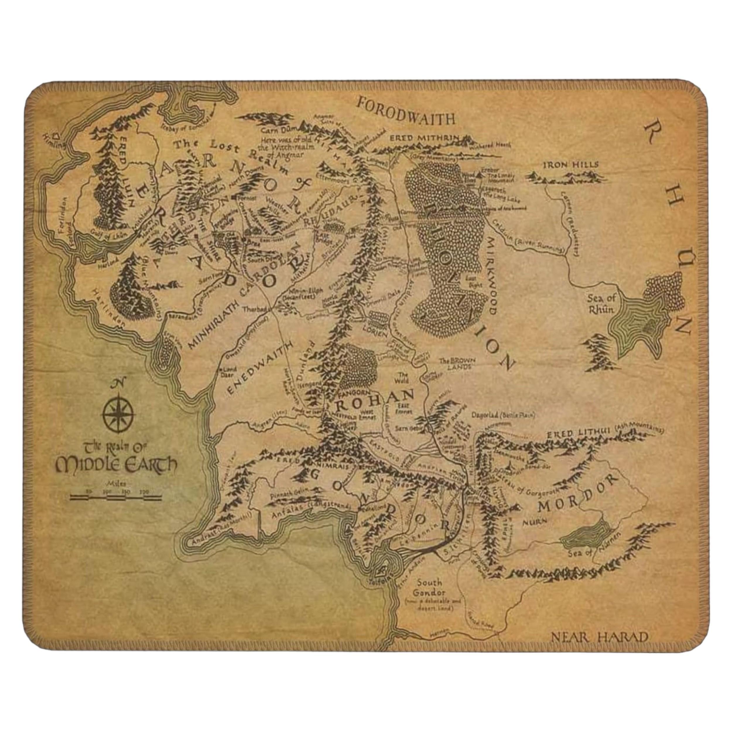 Mouse Pad Lavável Senhor Dos Anéis Mapa Terra Média 18x21cm