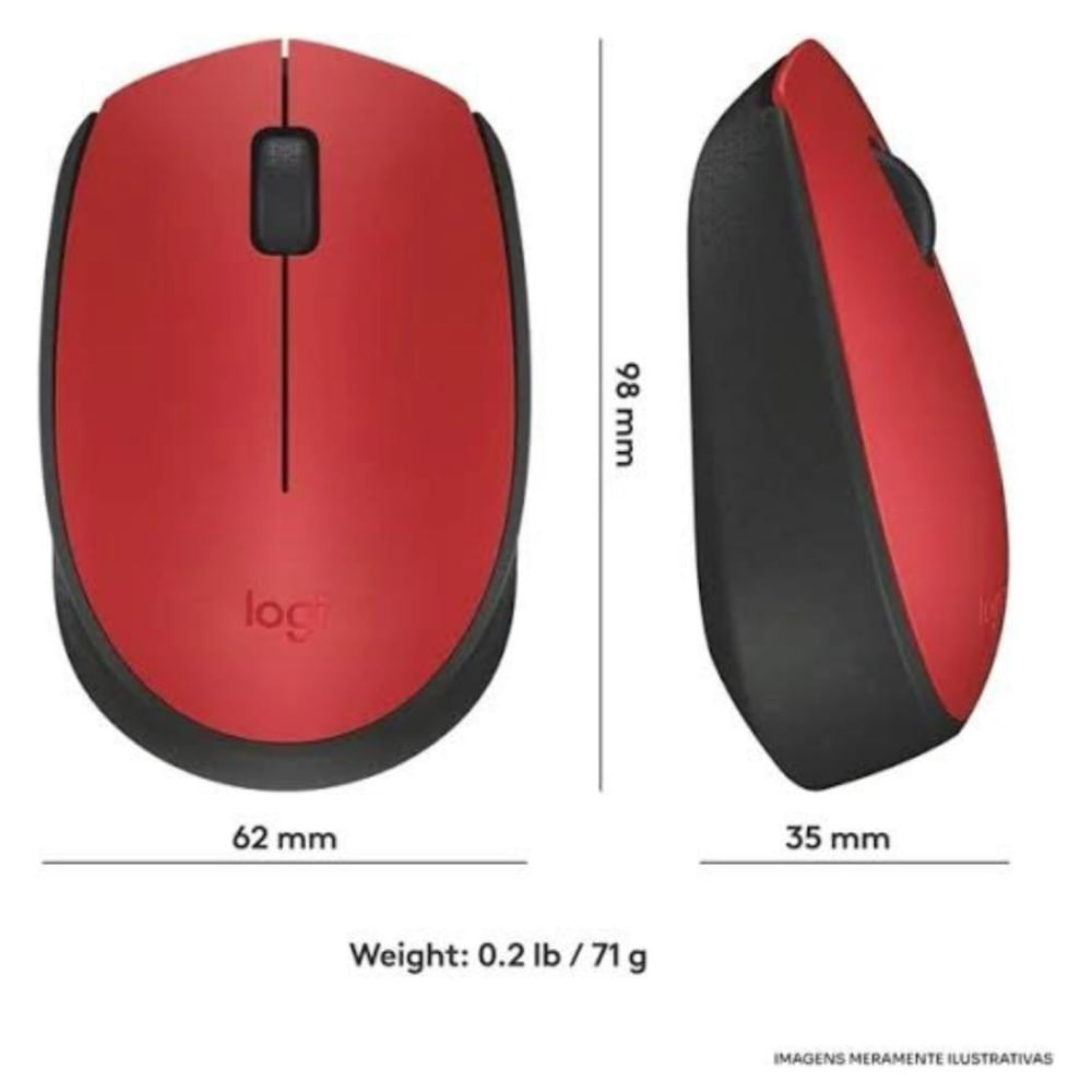 1x Mouse Sem Fio Logitech M170 Com Pilha Inclusa - Vermelho