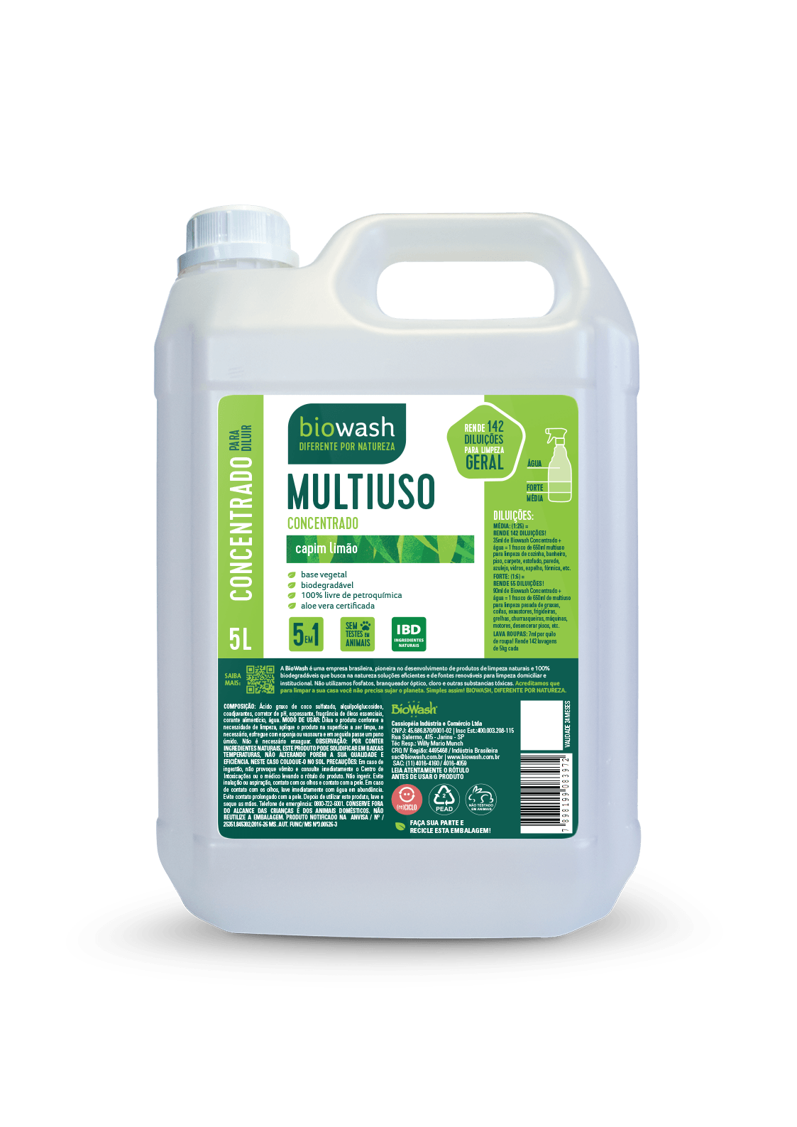 Multiuso Concentrado Capim Limão Biodegradável Biowash 5l
