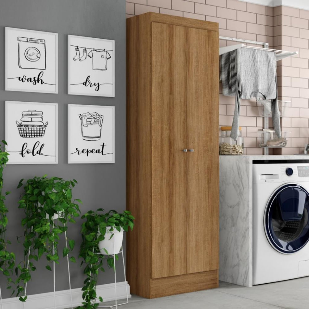 Este Fantástico Multiuso Possibilita Que O Consumidor Escolha As Variadas Formas De Uso. Podendo Servir Como Roupeiro, Sapateira, Armário Para Escritório Ou Até Mesmo Para A Área De Lavanderia. Excelente Aproveitamento Interno, Espaçoso E Com Muitas Prateleiras Garante Uma Organização Fácil E Prática. Características: 02 Portas Dobradiças Metálicas 3 Prateleiras Removíveis 2 Tampos Fixos Puxadores Ponto Cromado 01 Maleiro Embutido Material Mdp/mdf Dimensões: Altura: 182 Cm Largura: 55 Cm Profundidade: 34 Cm Peso: 27,00 Kg Garantia Do Fornecedor De 3 Meses