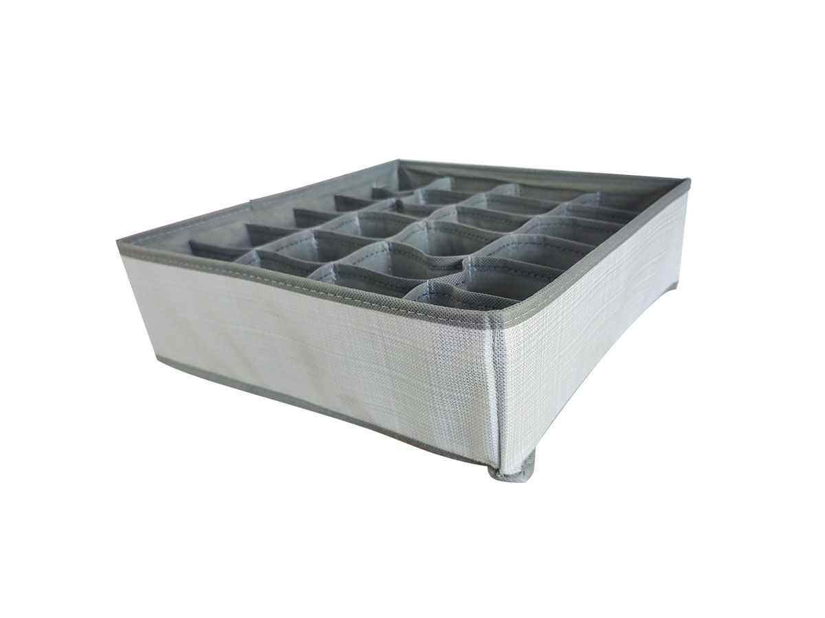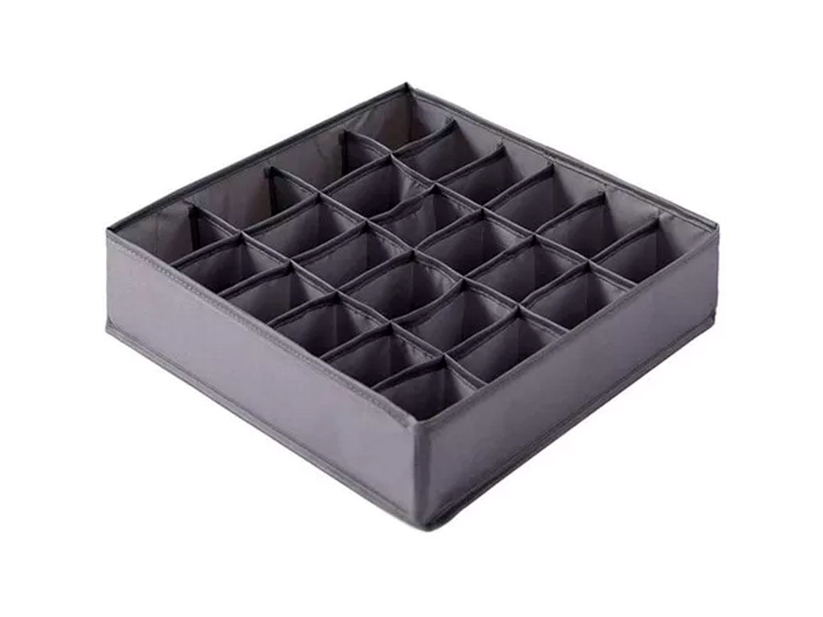 Características   O Organizador De Gavetas É Produzido Em Tnt E Possui 24 Divisórias, Ideal Para Organizar Roupas Intimas, Meias, Cuecas E Calcinhas De Forma Em Que Você Tenha A Visão De Tudo Que Está Guardado, Facilitando Na Hora De Escolher Oque Vestir.       Especificações Técnicas   - Material: Tnt - 24 Divisórias - Fácil De Guardar - Serve Em Gavetas De 31x31cm Ou Maiores - Dobrável, Pode Guardar Empilhados       Peso E Medidas Aproximadas   - Altura: 31cm - Largura: 31cm - Peso: 150g       Itens Inclusos   - 01 Organizador De Gavetas