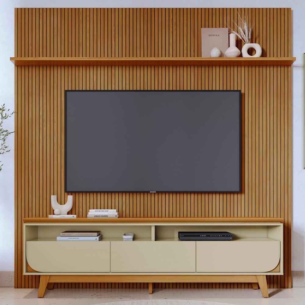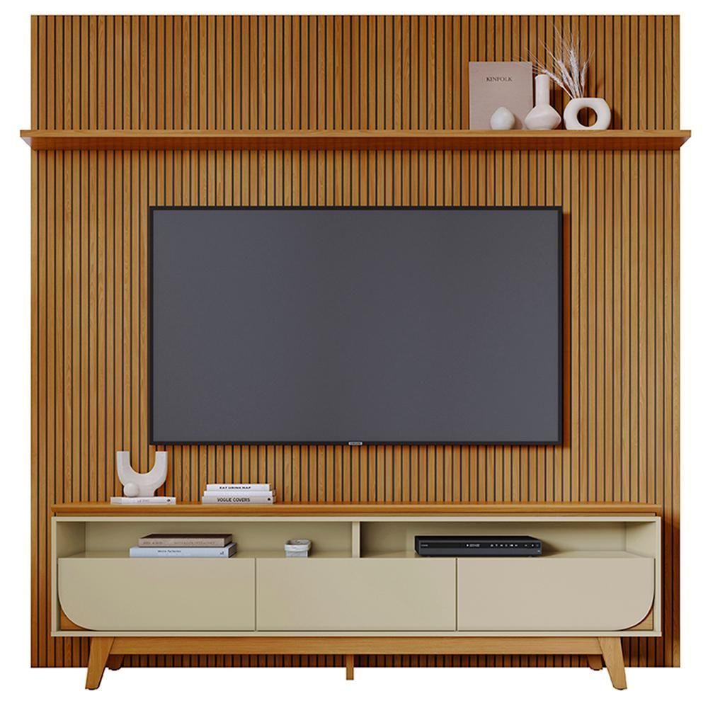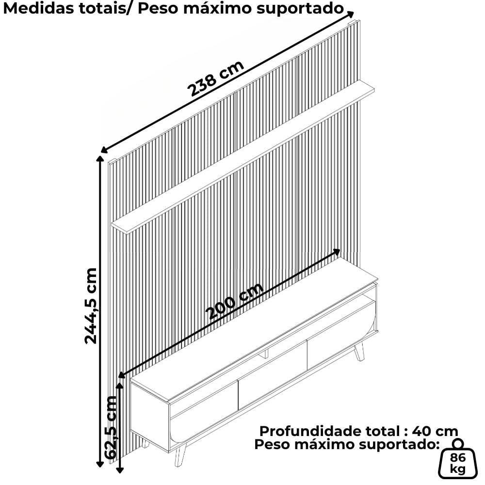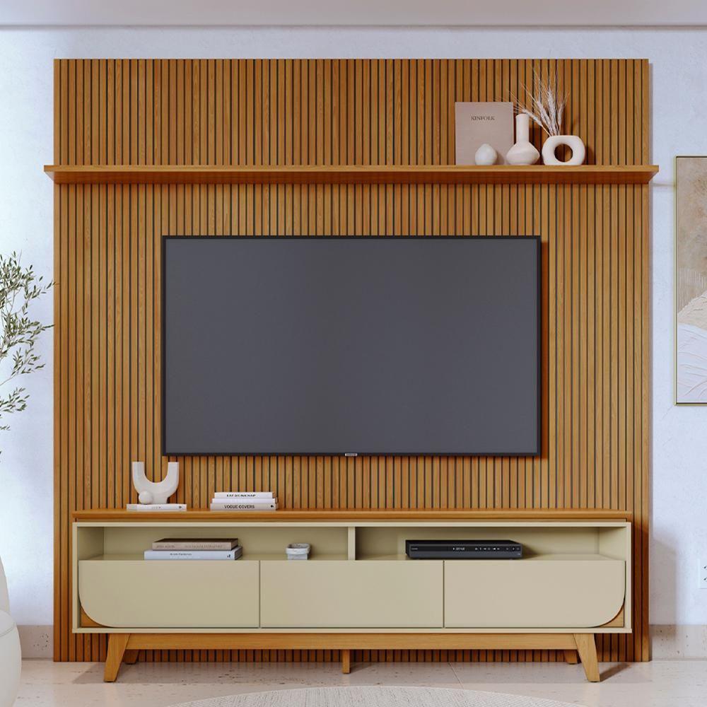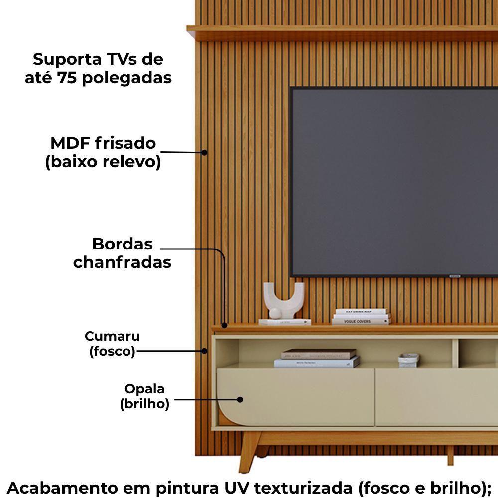 Painel E Bancada Tv 75 Polegadas 245x238 Cm Luna Madetec Cumaru Opala