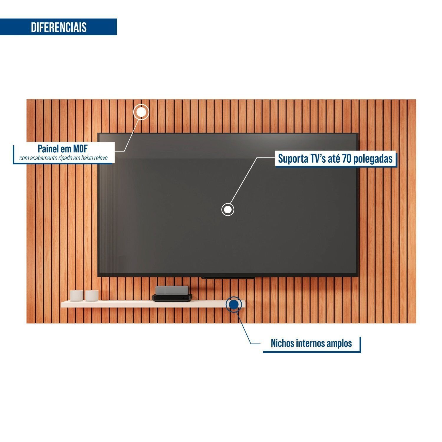 Painel Para Tv Até 70 Polegadas Frisos Decorativos Valença Freijó/off White
