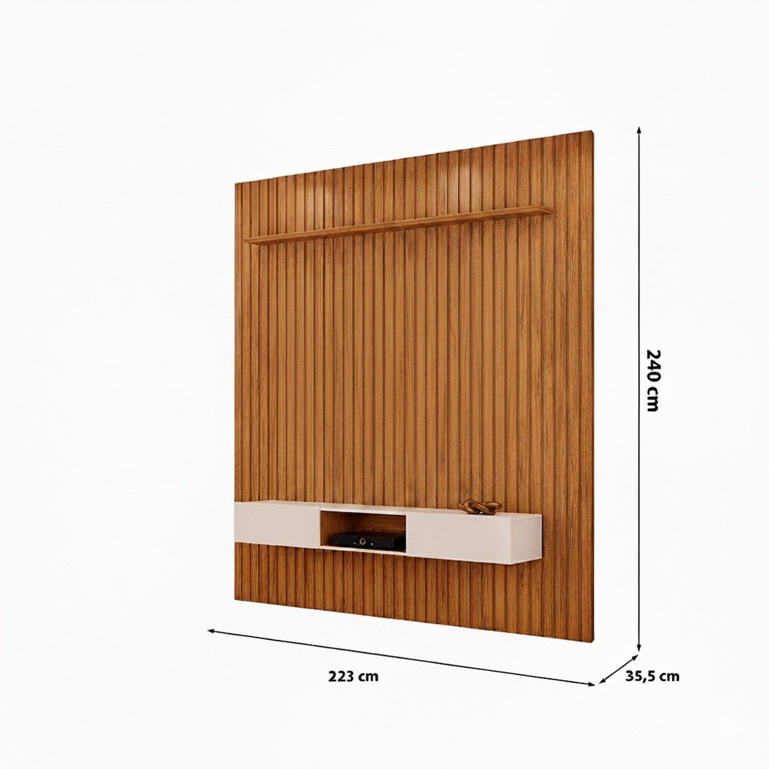 Painel para TV até 60 Polegadas Ripado com LED 223cm Trento Freijó/Off White