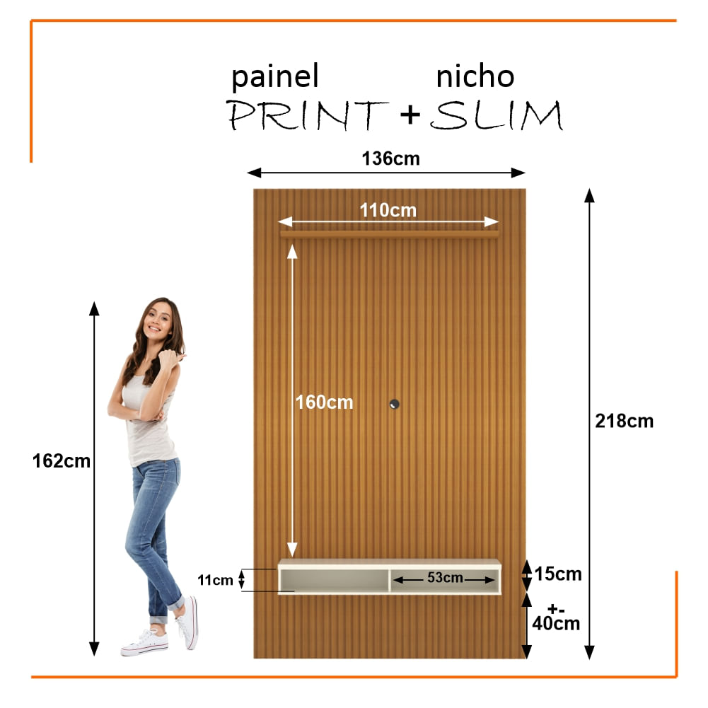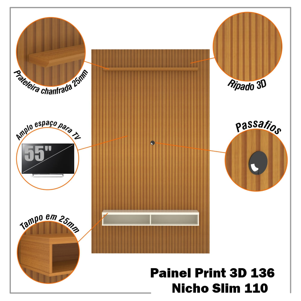 Painel Ripado 3d Para Tv Até 55 Polegadas Print Com Nicho 135cm Cor:cedro