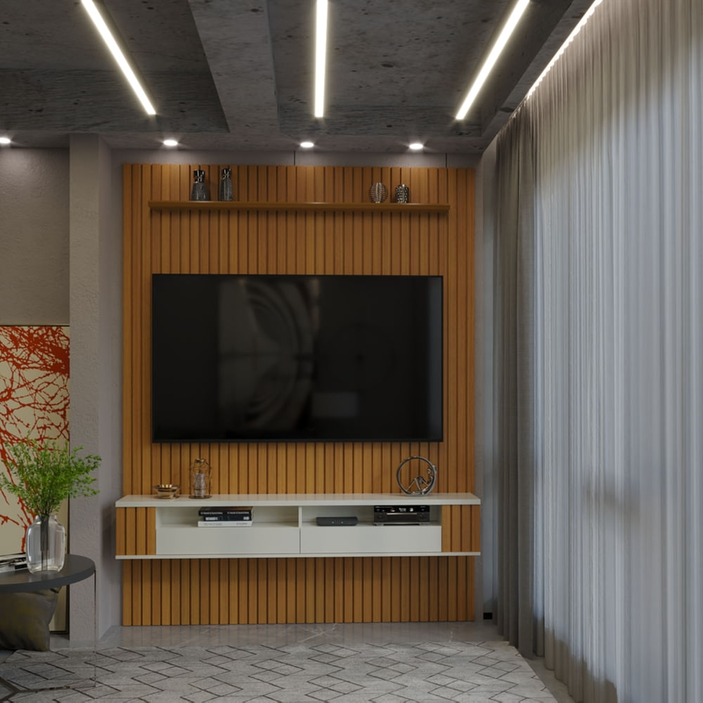 Painel Ripado Para Tv Até 75 Polegadas Intense Com Nicho 180cm Cor:off White