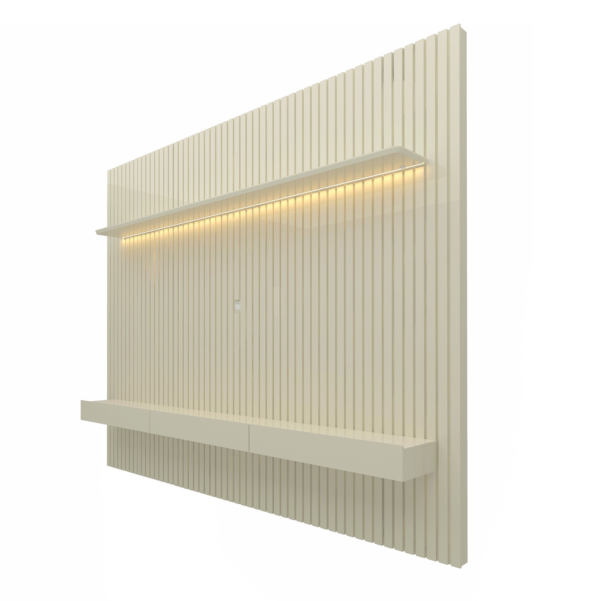 Painel Ripado Tv Até 85 Polegadas Com Led 230cm Nobre Gelius Móveis Off White