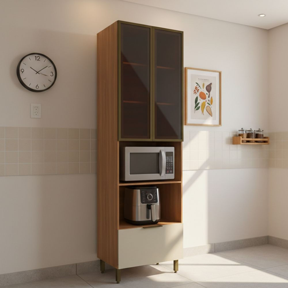 Paneleiro Torre Quente Com Vidro 2 Portas 1 Gaveta Lumina Telasul