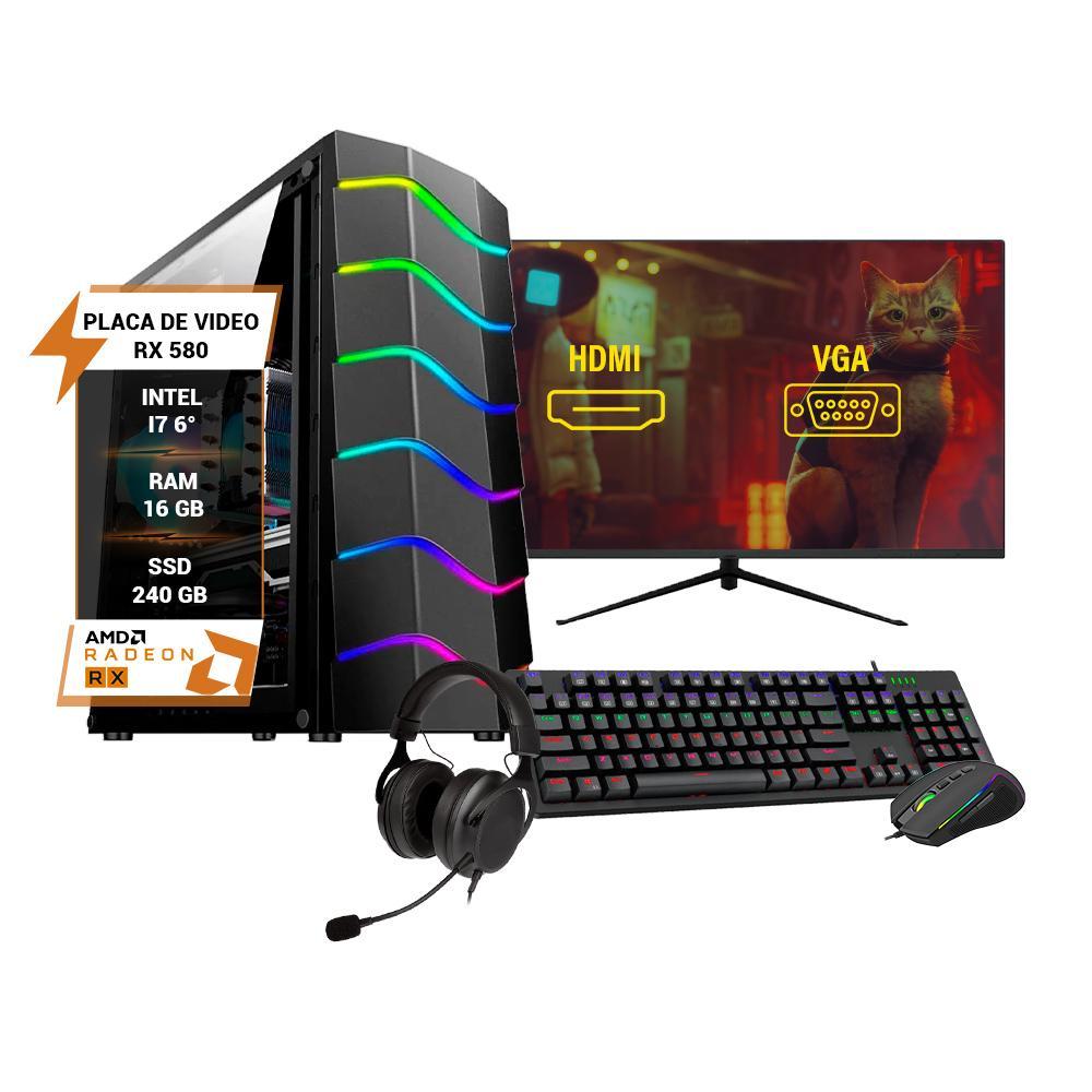 Pc Gamer Completo I7 6 Rx580 Ram 16gb Hd 1tb Ssd 240gb 24