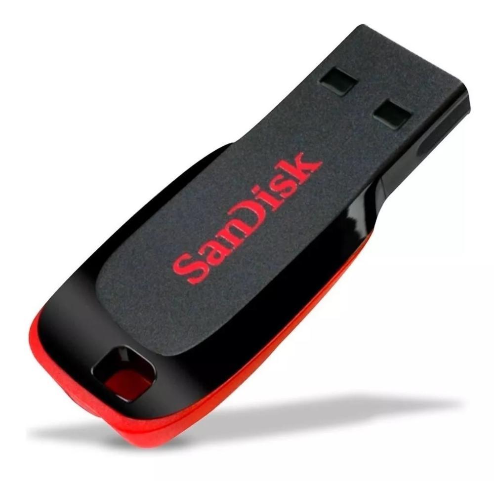 Pendrive Sandisk Cruzer Blade 64gb 2.0 Preto E Vermelho